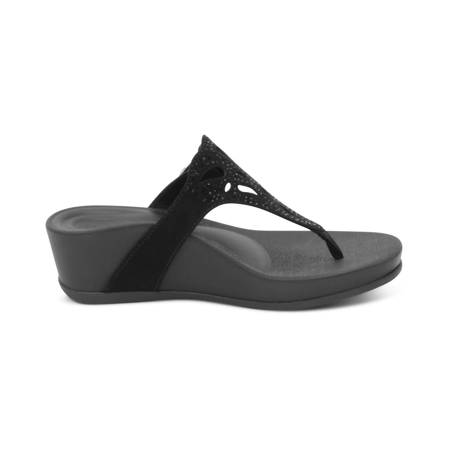 Flowy dresses, cropped pants, and even jumpsuits... this sandal works with them all!Built-in Aetrex Orthoticn. Fully adjustable quarter strap wedge. Hook & loop closure. Padded heel for extra cushionn. Bunion pocket cork wrapped 2 ' wedge. Lightweight UltraSky EVA foam midsole.