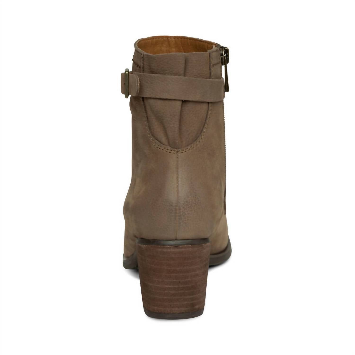 Say hello to the perfect, most versatile boot. The ankle height makes this style easily transition from day to night. Wear them with your favorite skinny jeans and tee for a more laid back look, or pair them with your favorite mini dress and jacket for a night out on the town.Step into comfort and style with the Women's Rubi Buckle Boot by Aetrex in elegant taupe. Ankle-high with a round toe, these boots feature weatherproof genuine leather and an adjustable ankle buckle for a tailored fit. The built-in Aetrex Orthotic System provides signature arch support and pressure-relieving UltraSky cushioning, ideal for preventing common foot pains like plantar fasciitis. Designed with a block heel height of 2.25 inches, they offer a perfect minimalist look for a dinner party or casual outings.