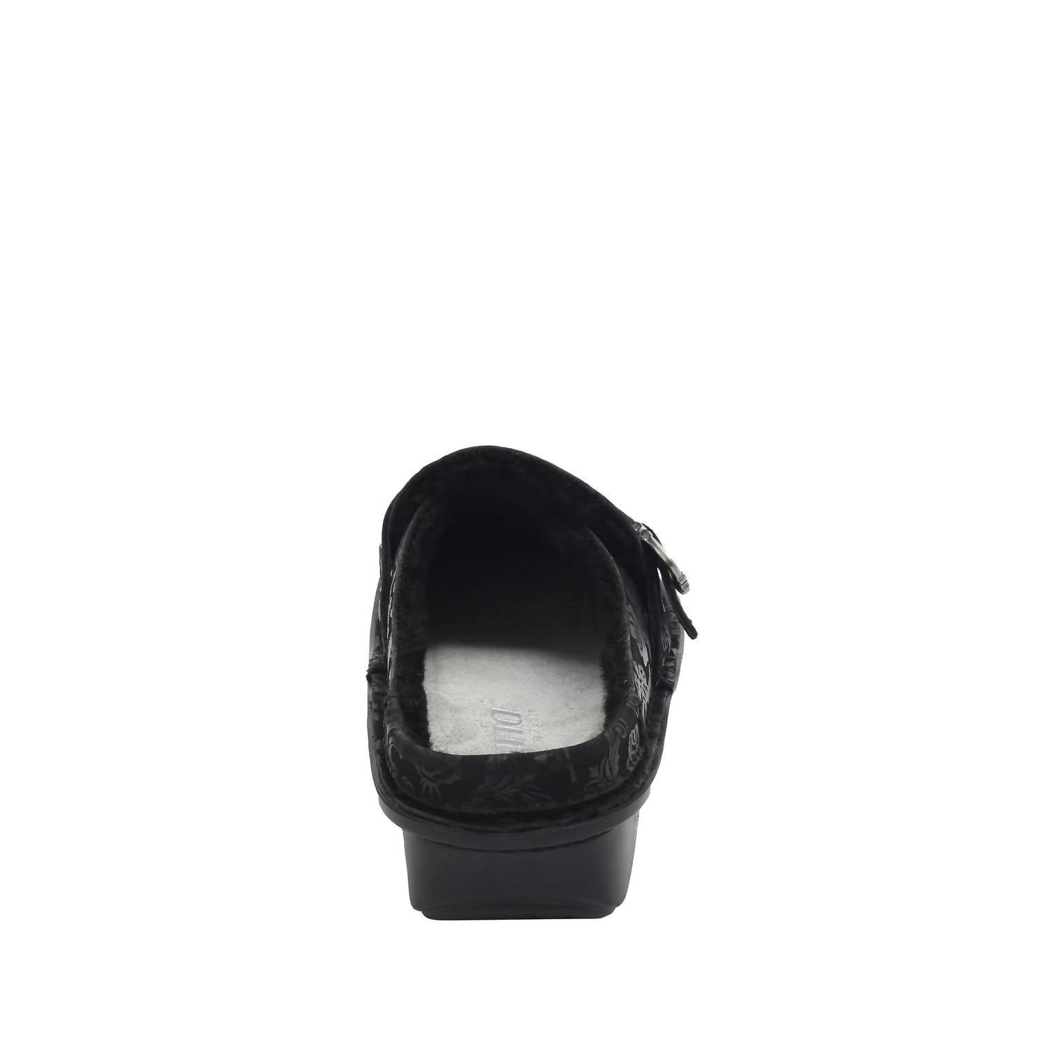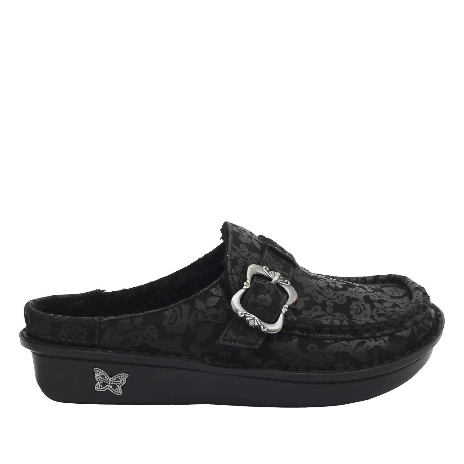 Slip them on and go! Step into comfort and style with the Alegria Women's Brigid Goth You're Cute Open-back Clog, a perfect blend of functionality and fashion. Highlighting a semi open-back design, this clog is crafted from genuine leather featuring a laser etched pattern, ensuring both elegance and durability. The clog's 1' heel and Mini outsole are designed for flexibility and even pressure distribution, while the patented interlocking footbed offers superior cushioning and arch support. Enhanced by moccasin-style stitching and an ornate adjustable buckle, this clog promises a secure, customized fit, making it an ideal choice for fall and vacation looks.