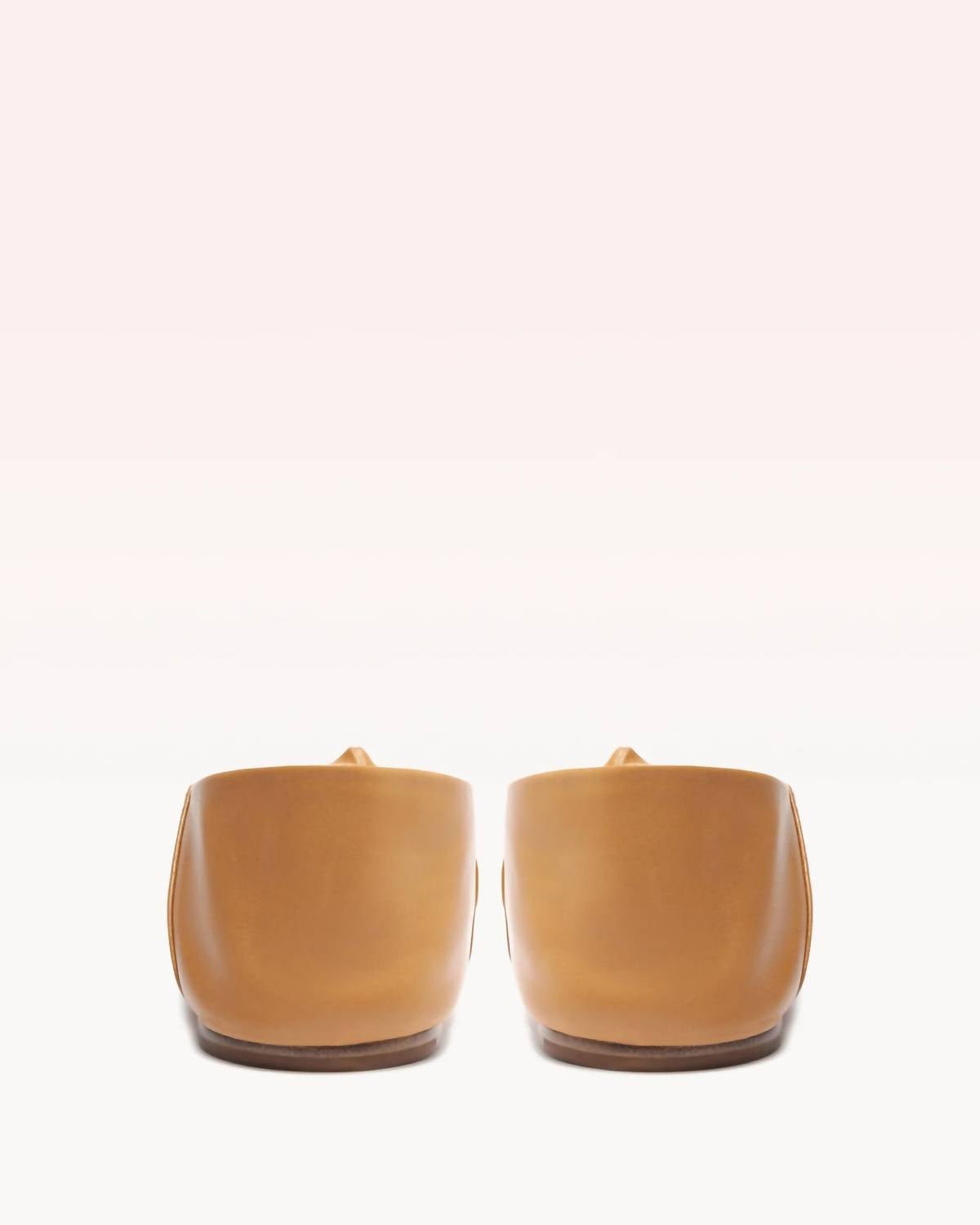 A classic loafer that is both comfortable and polished.Step into effortless style with the Clarita Collapsible Flat by Alexandre Birman, a modern twist on the classic ballerina in a chic butterscotch hue. Crafted from supple Nappa leather, this flat features a collapsible back for ultimate versatility and comfort. It is adorned with the signature Clarita bow and designed with a round toe and flat heel, measuring 0.5 inches. This minimalist piece is your perfect vacation companion for the summer season.