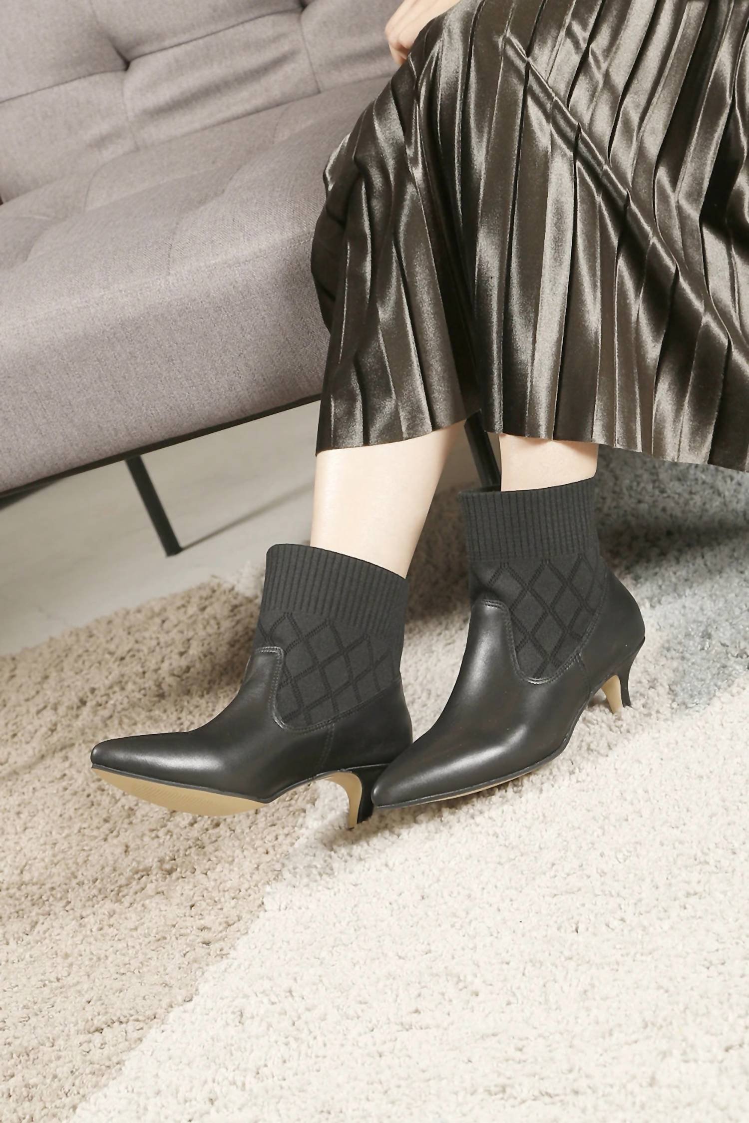 Don't be deceived, these heels are comfy as can be.A kitten heel for those cold winter months. Soft knit?sock around the ankle.