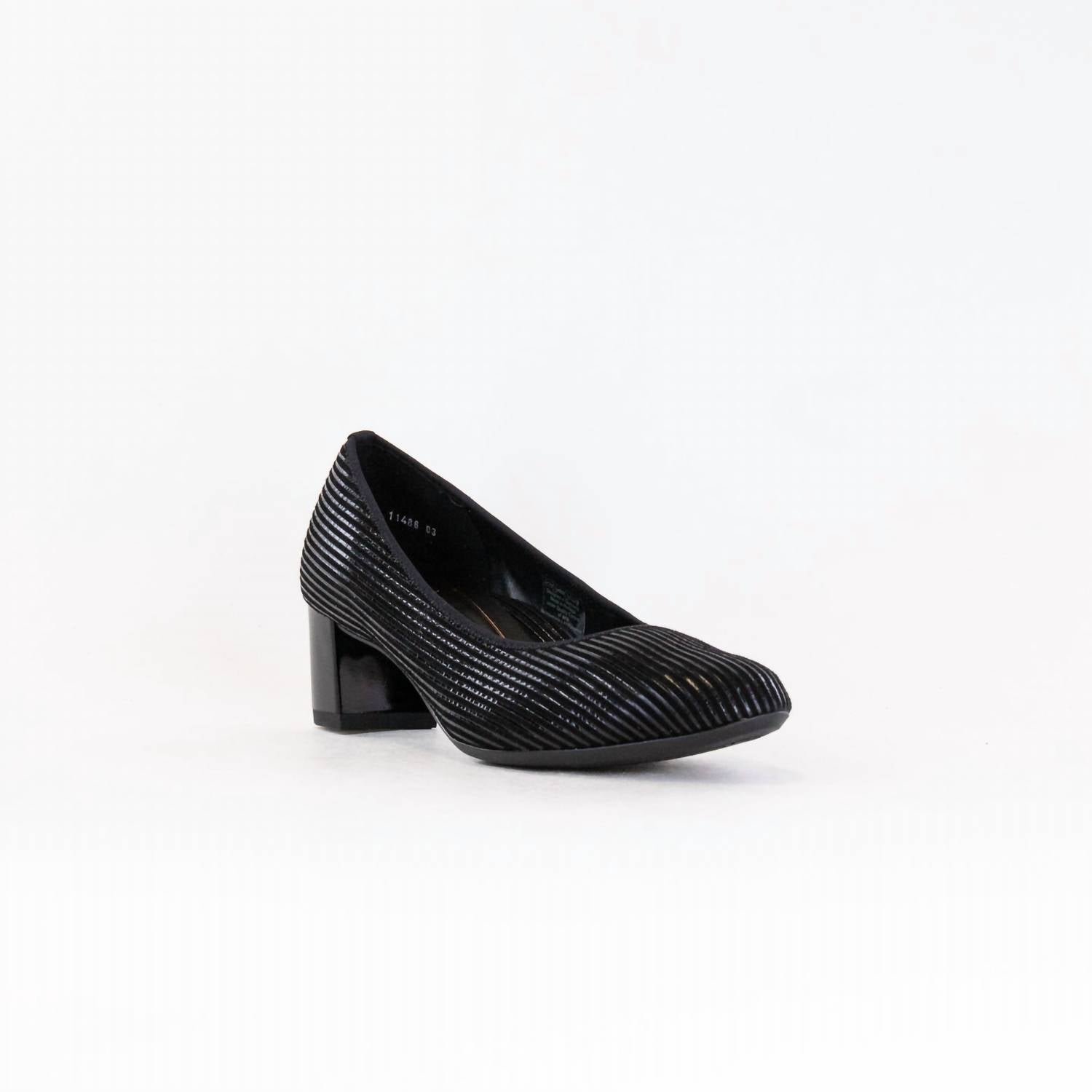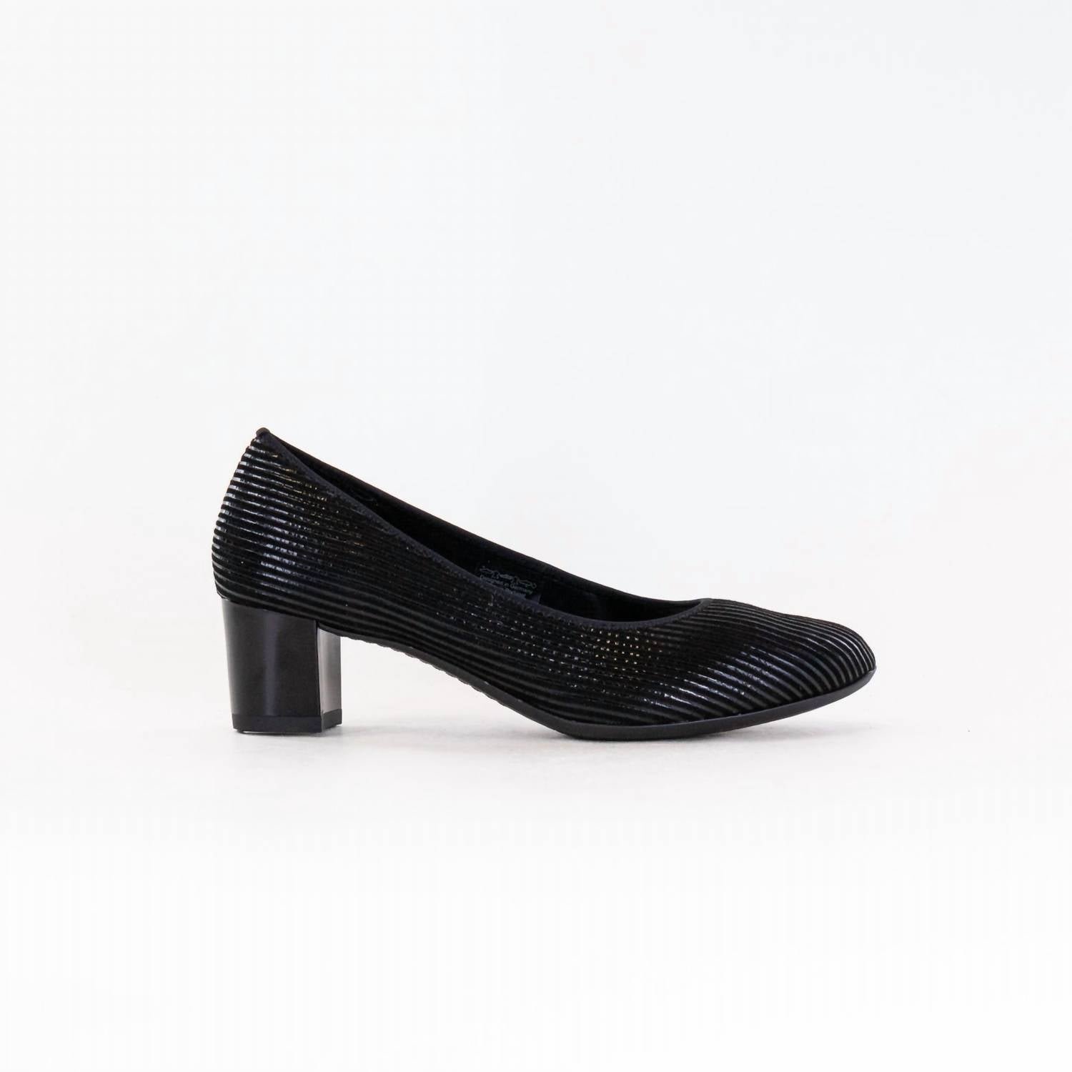 Elevate your style with the Women's Kendall Shoes by Ara, crafted in a stunning Black Metallic leather. These versatile pumps feature an almond toe and a chic block heel at 1.77 inches, perfect for both workwear and dinner parties. The Kendall pump is designed for medium fit sizes ranging from 5 to 10.5 US, combining elegance with all-day comfort. Effortlessly transition from the office to the evening, ensuring comfort and sophistication with every step.