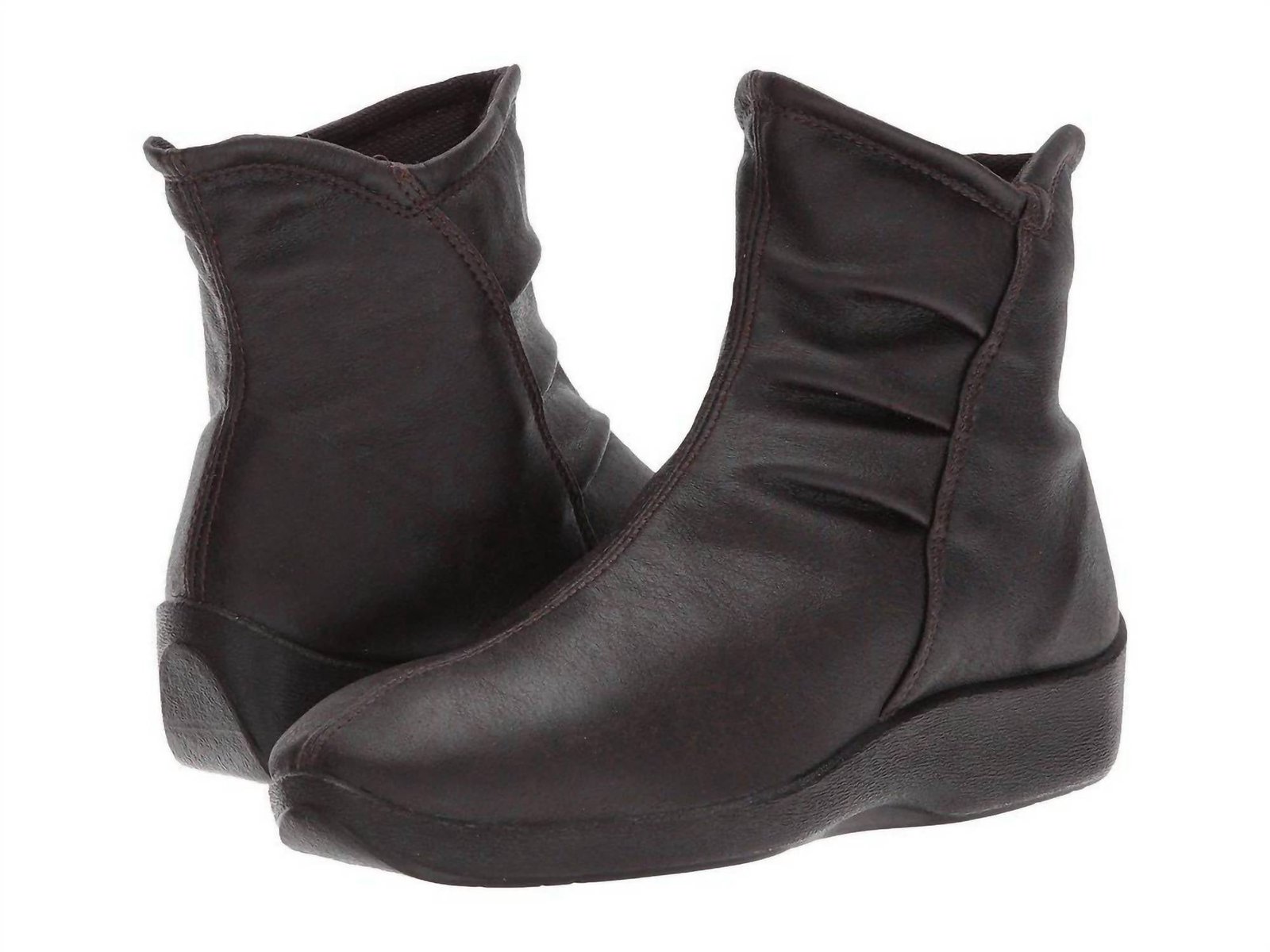 Say hello to the perfect, most versatile boot. The ankle height makes this style easily transition from day to night. Wear them with your favorite skinny jeans and tee for a more laid back look, or pair them with your favorite mini dress and jacket for a night out on the town.Step into style and comfort with the Women's L19 Boot by Arcopedico, a chic addition to your fall wardrobe in Cafe Brown. Crafted from lightweight and breathable Lytech synthetic upper material, these ankle boots are perfect for travel, easily fitting into your suitcase thanks to their flexible design. The flat heel and round toe ensure all-day comfort, while the vintage trend keeps you on point for the season. With a focus on promoting healthy circulation, these vegan-friendly booties are designed for the modern woman on the go.