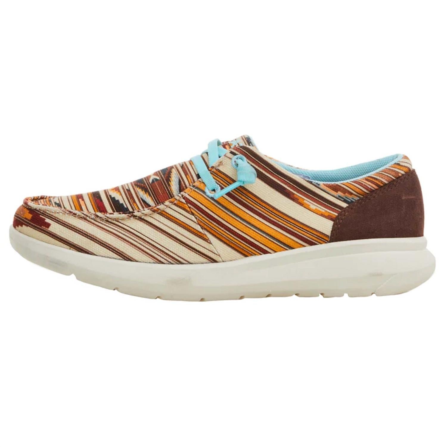 Loafers so versatile you can wear them with just about anything.The Ariat x Centinela Traditional Arts Hilo is back with two limited-edition styles featuring eye-catching Chimayo patterns. This go-to shoe for casual days features an open cell cushioning insole, a light FLX Foam sole for comfort, a moc toe, and a flat design. It has a 3' shaft height and comes in a textile or leather upper with mesh lining. By purchasing this product, you support responsible leather production from Leather Working Group-certified tanneries.