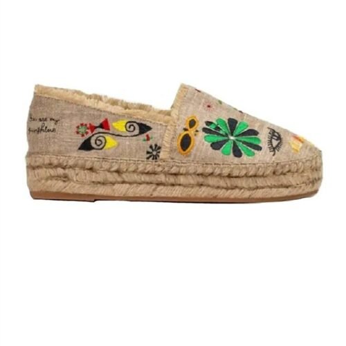 Nothing says vacation quite like a nice pair of espadrilles.Step into sophistication with the Prova Shoe by Ateliers, expertly crafted for style and comfort. This women's leather espadrille loafer in a stunning Butter/Black combo features a soft round toe and a luxurious leather lining and insole. Made in Spain with a durable rubber outsole, these shoes blend quality with effortless elegance. Boasting a slip-on style, they are a perfect choice for the modern woman seeking flat heel comfort with a chic edge.