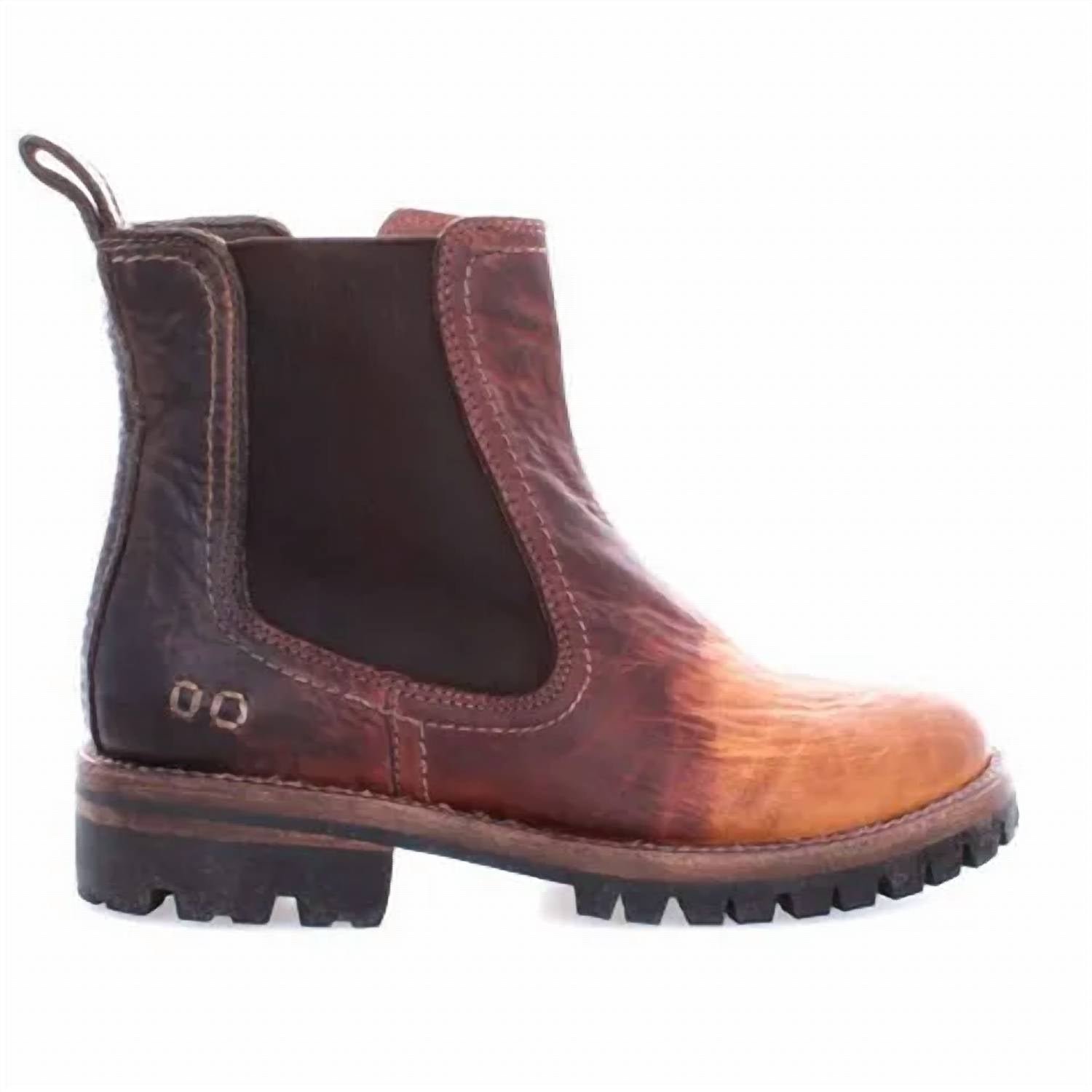 Say hello to the perfect, most versatile boot. The ankle height makes this style easily transition from day to night. Wear them with your favorite skinny jeans and tee for a more laid back look, or pair them with your favorite mini dress and jacket for a night out on the town.You l o v e NANDI, right Well look who has stepped up and giving her a run for her money. Meet KIEFRA TREK, a cool Chelsea with an even cooler outsole. KIEFRA TREK provides all the style you love about NANDI, but adds a punch of edge, as she sits atop a thicker, black treaded Vibram outsole. We have also added an inner zip to make her your go-to on the way out the door. KIEFRA TREK delivers it all, style comfort and edge.Chrome and formaldehyde free vegetable tanned leatherWomens sized Chelsea boot with brown goring on one side, inner zip on the otherRounded toe, pull tab Chunky black treaded Vibram outsole5 in. shaft, 1.5 in. heelHandmade and hand finished in Leon, Mexico