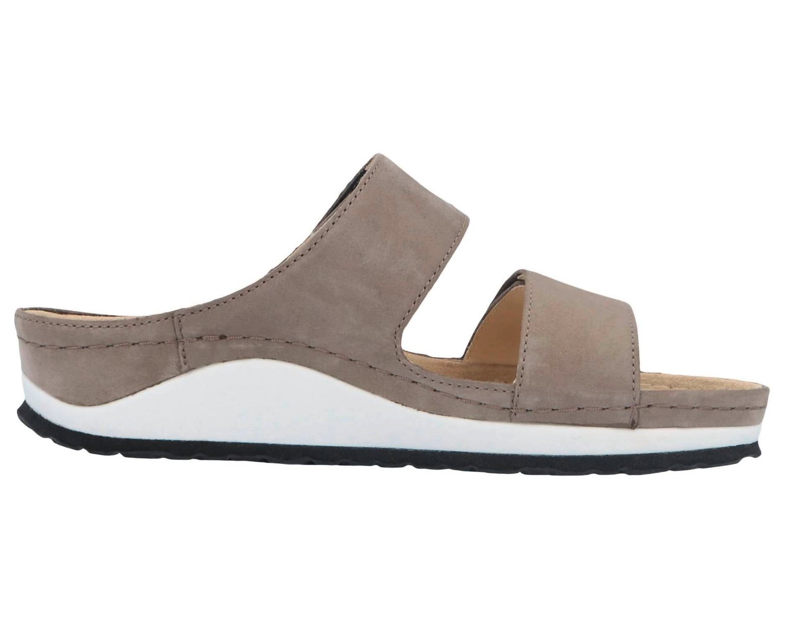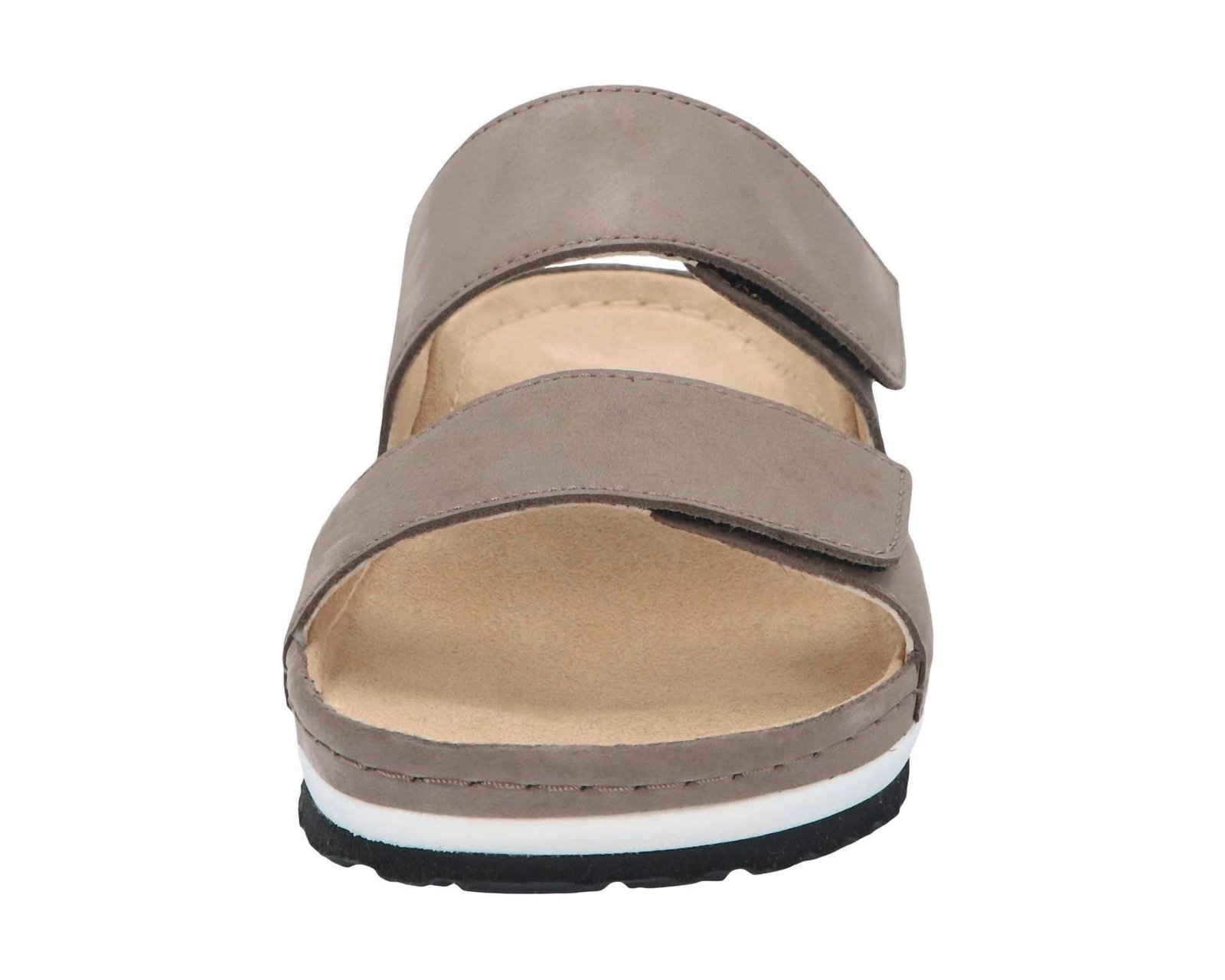 This sandal will take you from brunch to dinner and everything in between.Introducing the Women's Senja Sandals by Berkemann, a perfect fusion of traditional craftsmanship and contemporary style. These sandals feature vibrant multi-colored accents and large-sized buckles, creating a striking visual appeal. Crafted from high-quality faux leather in a chic Mud Gray, they boast a comfortable width, soft padded straps, and a genuine leather-covered insole. Designed with the Original 5-phase footbed, these sandals ensure optimal support and comfort with every step.