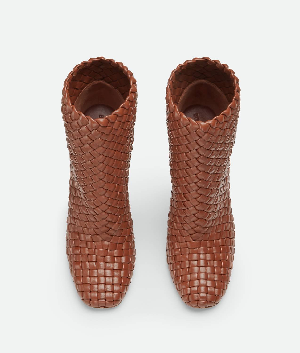 Say hello to the perfect, most versatile boot. The ankle height makes this style easily transition from day to night. Wear them with your favorite skinny jeans and tee for a more laid back look, or pair them with your favorite mini dress and jacket for a night out on the town.Elevate your wardrobe with the Women's Canalazzo Ankle Boots by Bottega Veneta, presented in the sophisticated Brown Sugar hue. Crafted from luxurious Intreccio lambskin leather, these boots feature an unlined design with a distinctive leather-covered block heel measuring 10 cm (3.9 inches). Made in Italy, they incorporate a stylish round toe shape for added elegance.