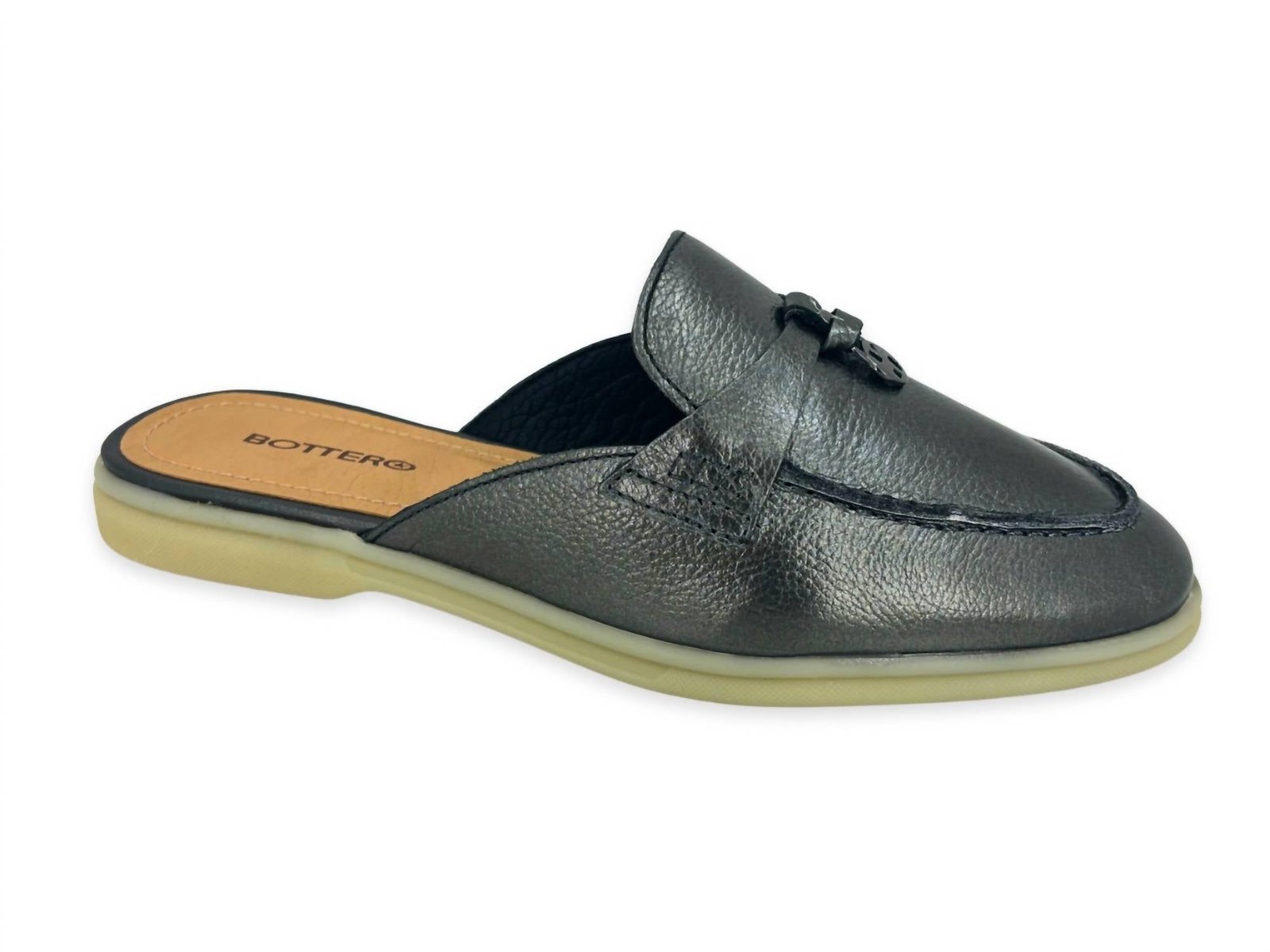 A trend that everyone is loving and this style might just be our favorite.Introducing the Georgia 803 Women's Mules, a stunning creation by Bottero that seamlessly blends Brazilian artistry with modern elegance.Meticulously fashioned from supple leather, these mules provide a touch of sophistication that you can feel with every step. The sleek design showcases a perfect balance between classic aesthetics and contemporary fashion.Step into a realm of unparalleled comfort with the leather-lined interior. Your feet will revel in the plush embrace, ensuring a cozy fit that lasts throughout the day. The cushioned footbed adds an extra layer of pampering, allowing you to glide through your daily activities with ease.These mules feature a flexible rubber outsole that adapts seamlessly to your movements, providing a natural and unrestricted stride. Whether you're navigating bustling urban streets, going about your workday, or enjoying leisurely walks, these mules offer the comfort and freedom you deserve.