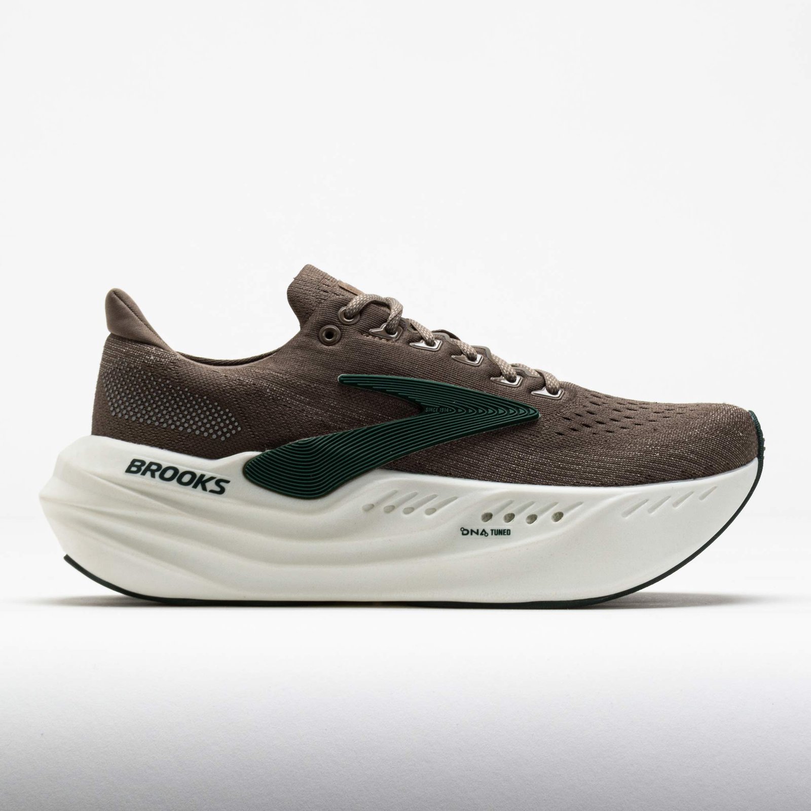 Run effortlessly in the Brooks Glycerin Max! This neutral running shoe features a nitrogen-infused DNA Tuned midsole with dual-size cell technology. Larger cells in the heel provide plush landings. while smaller cells in the forefoot deliver springy toe-offs. Enjoy smooth transitions from the GlideRoll Rocker geometry. Plush and protective. the Brooks Glycerin Max helps you get the most out of your miles!