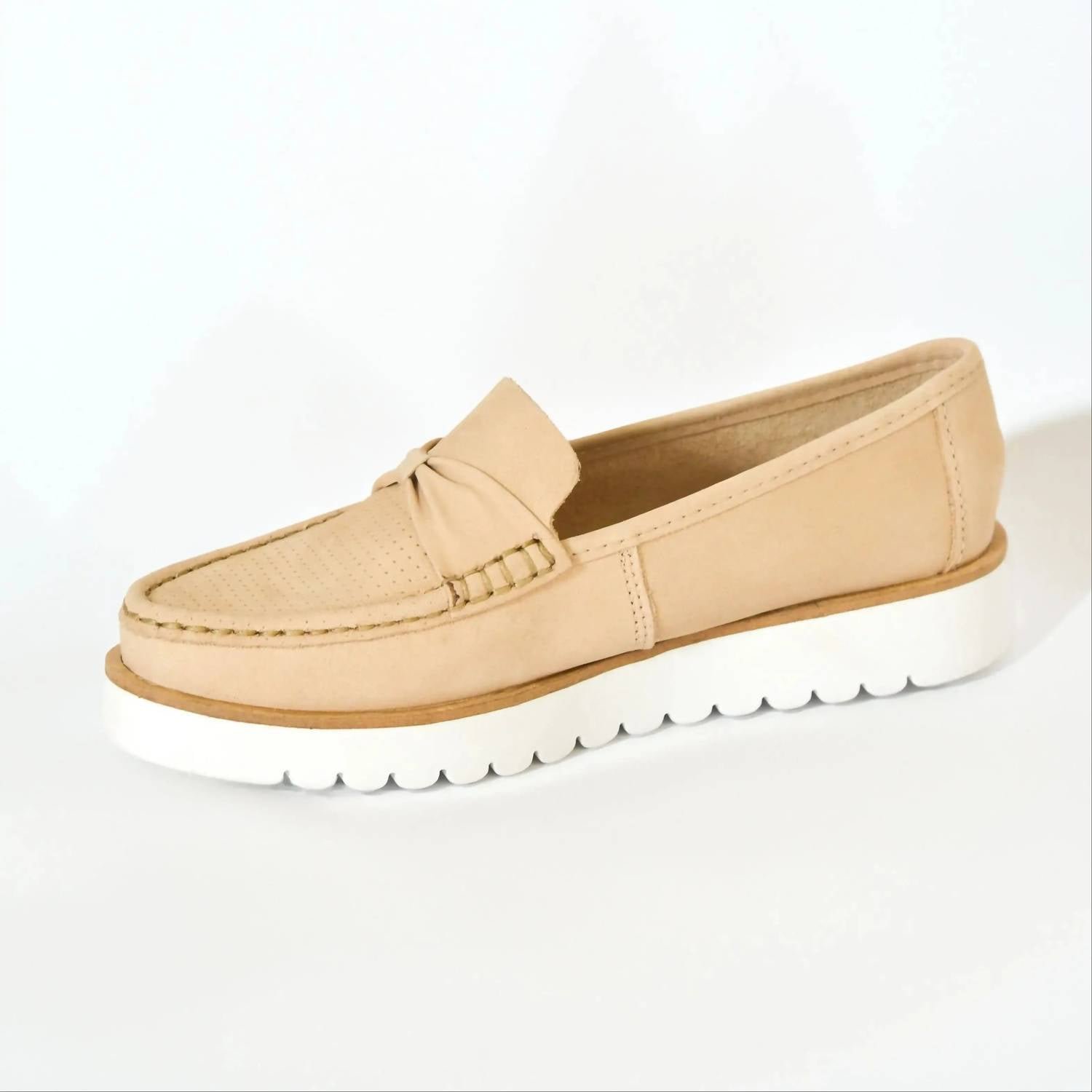 Elevate your footwear collection with the Women's Margot Slip-On Loafer by CHARLESTON SHOE CO., a blend of classic and modern aesthetics for any occasion. Crafted from premium faux leather with a buttery soft beige upper, this loafer features a chunky rubber sole offering both comfort and timeless style. Its slip-on design and cushioned insole make it a perfect choice, providing a true-to-size fit that complements tailored trousers or a casual midi dress effortlessly. Ideal for summer and holiday gatherings, this flat heel loafer is designed to be a wardrobe staple.