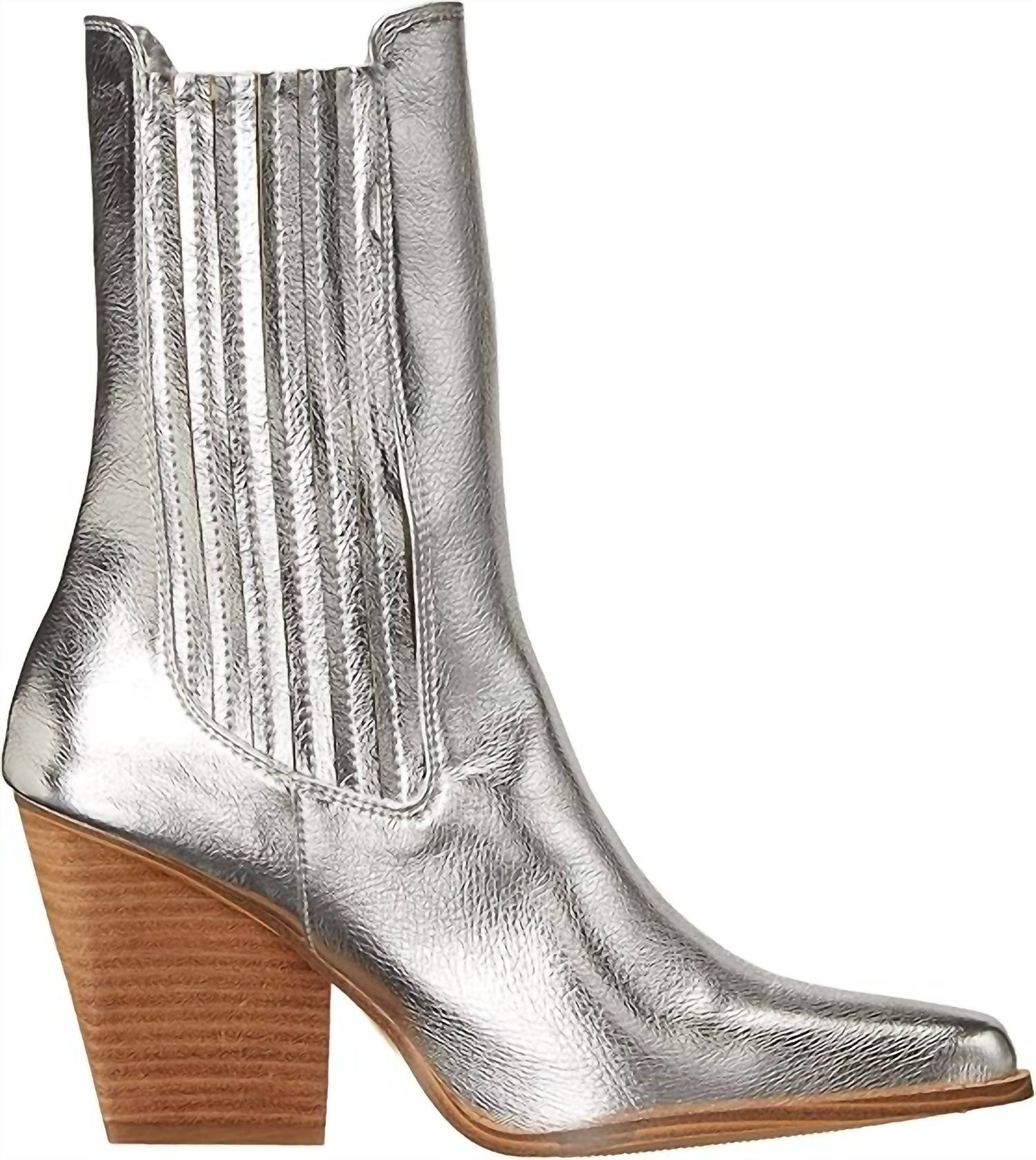 A stylish boot with a comfortable fit and the perfect amount of height. These classic boots are the perfect addition to any outfit and can be worn season after season.This mid-calf boot combines modern style with everyday ease, featuring a sleek metallic finish and flexible stretch gore panels for a comfortable, secure fit. A stacked heel adds subtle height, making it a versatile choice for both casual and elevated looks.
