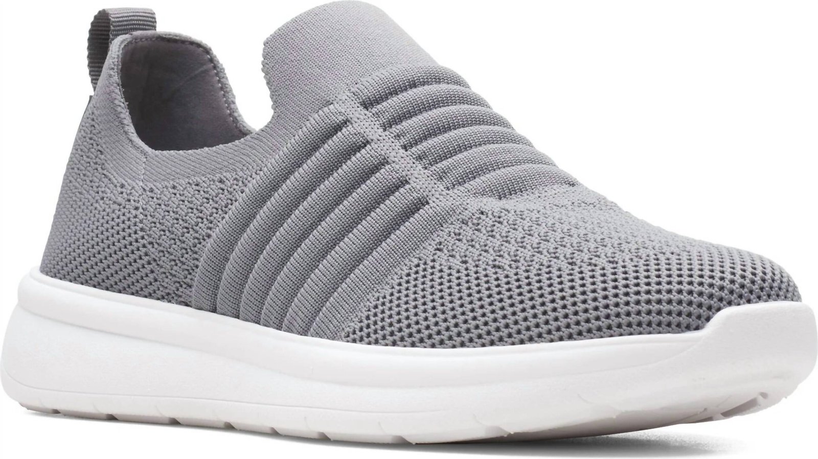 Cute, functional, and comfortable. These sneakers check all the boxes.Introducing the Women's Ezera Walk Sneaker by Clarks, designed for relaxed, everyday wear. This light grey, minimalist sneaker features a practical slip-on style with a round toe shape and flat heel, perfect for a spring dinner party. Its removable Cushion Soft footbed, combined with ultra-soft EVA foam, ensures exceptional comfort and is machine washable for easy care. The airy EVA sole provides excellent impact absorption, making each step feel effortless.