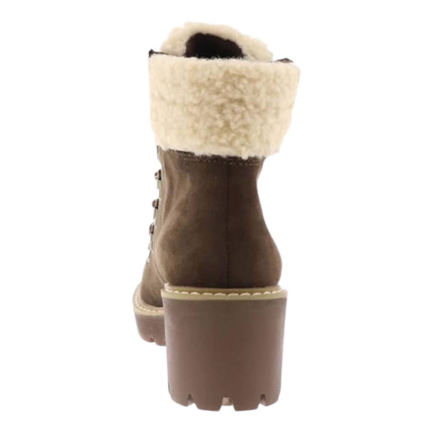 Step confidently into fall and winter. Ankle-high boots feature a stylish faux leather upper with a cozy faux fur trim and fleece lining. Designed with a secure lace-up closure. Boast synthetic outer material and a durable rubber lug outsole. Comfort and warmth of a lightly cushioned footbed and round toe design.
