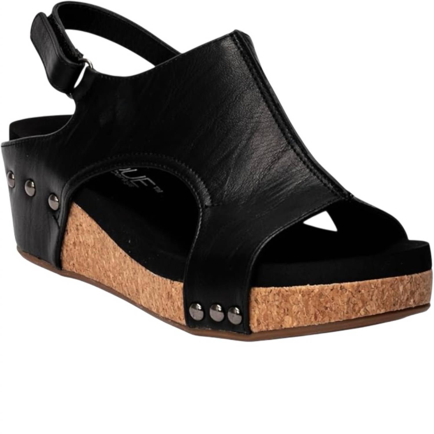 Step into style and comfort with the Women's Volta II Wedge Sandals by Corkys Footwear. Crafted from sleek black faux leather, these sandals feature an open toe and a 2-inch wedge heel, ideal for adding a touch of height without sacrificing comfort. The design includes an adjustable ankle strap for a personalized fit, with Corkys Soft EVA Memory Foam Insoles providing all-day support and durability. Perfect for travel or spring outings, these minimalist sandals effortlessly complement any outfit, making them a versatile addition to your wardrobe.