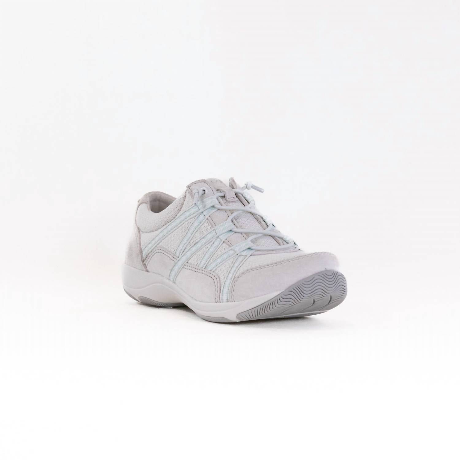 Get your daily steps in with these adorable sneakers.Elevate your athleisure game with the Women's Harlyn Sneaker by Dansko, crafted in a chic ECRU and designed for fitness and workout versatility. These sneakers feature a combination of chrome-free leather and recycled nylon uppers, with suede treated for stain resistance, ensuring premium support and lightweight performance. The interior boasts Dri-Lex Dri-Freeze lining and a removable footbed with Dansko Natural Arch technology, delivering exceptional moisture management, odor control, and comfort. Elasticized laces accentuate the round toe design, and the natural rubber outsole offers durable traction. Care for your sneakers by wiping with a damp cloth and treating with Dansko's recommended products for lasting protection.