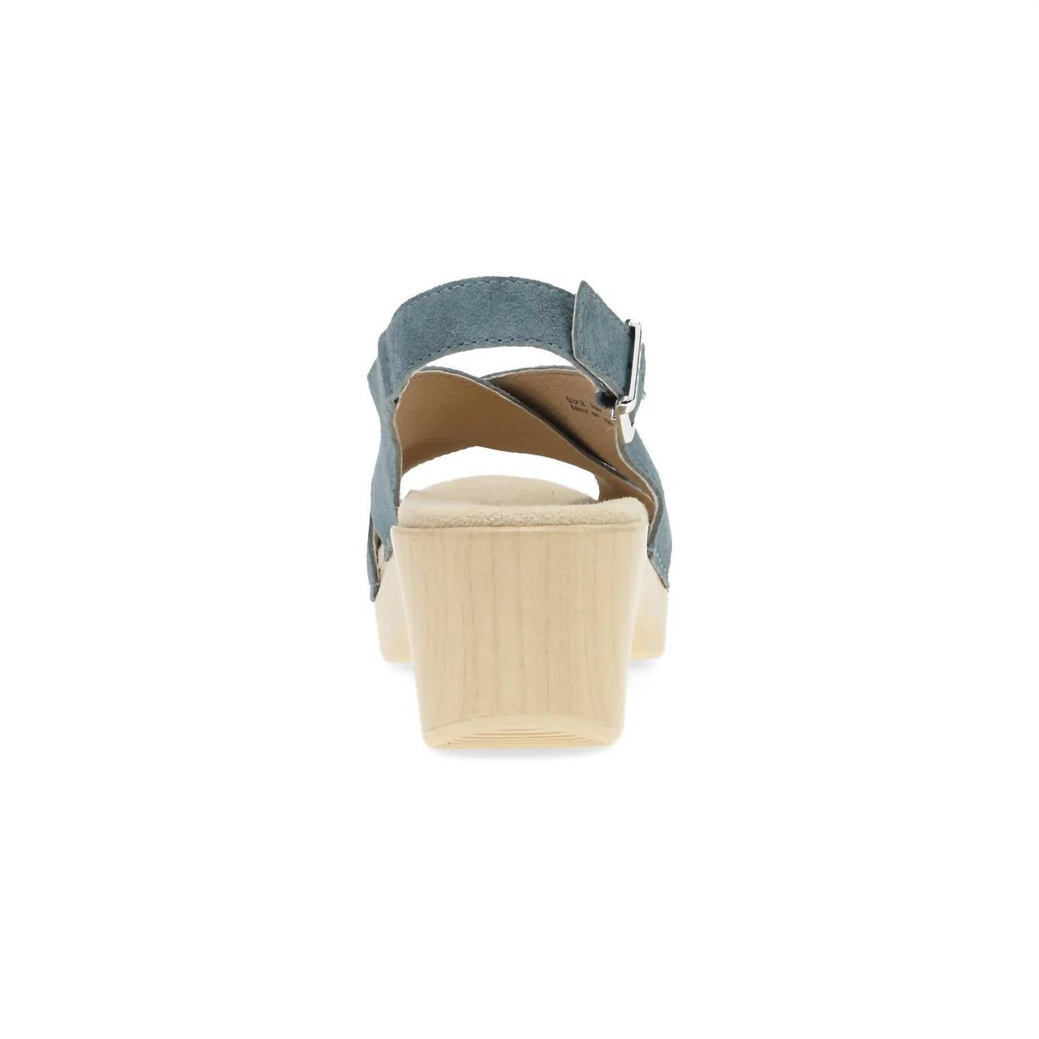 Flowy dresses, cropped pants, and even jumpsuits... this sandal works with them all!Elevate your summer vacation style with the Women's Sloane Sandal by Dansko, crafted from white full grain leather. This minimalist sandal features a 1.5-inch wedge heel and a 0.75-inch platform for comfortable elevation. The buckle adjustable strap ensures a tailored fit, while the Dri-Lex treated sock lining provides moisture management and odor control. With a PU outsole for durability and a shock-absorbing foam footbed, simply wipe clean with a soft cloth and maintain with Dansko Leather Cream for lasting wear.
