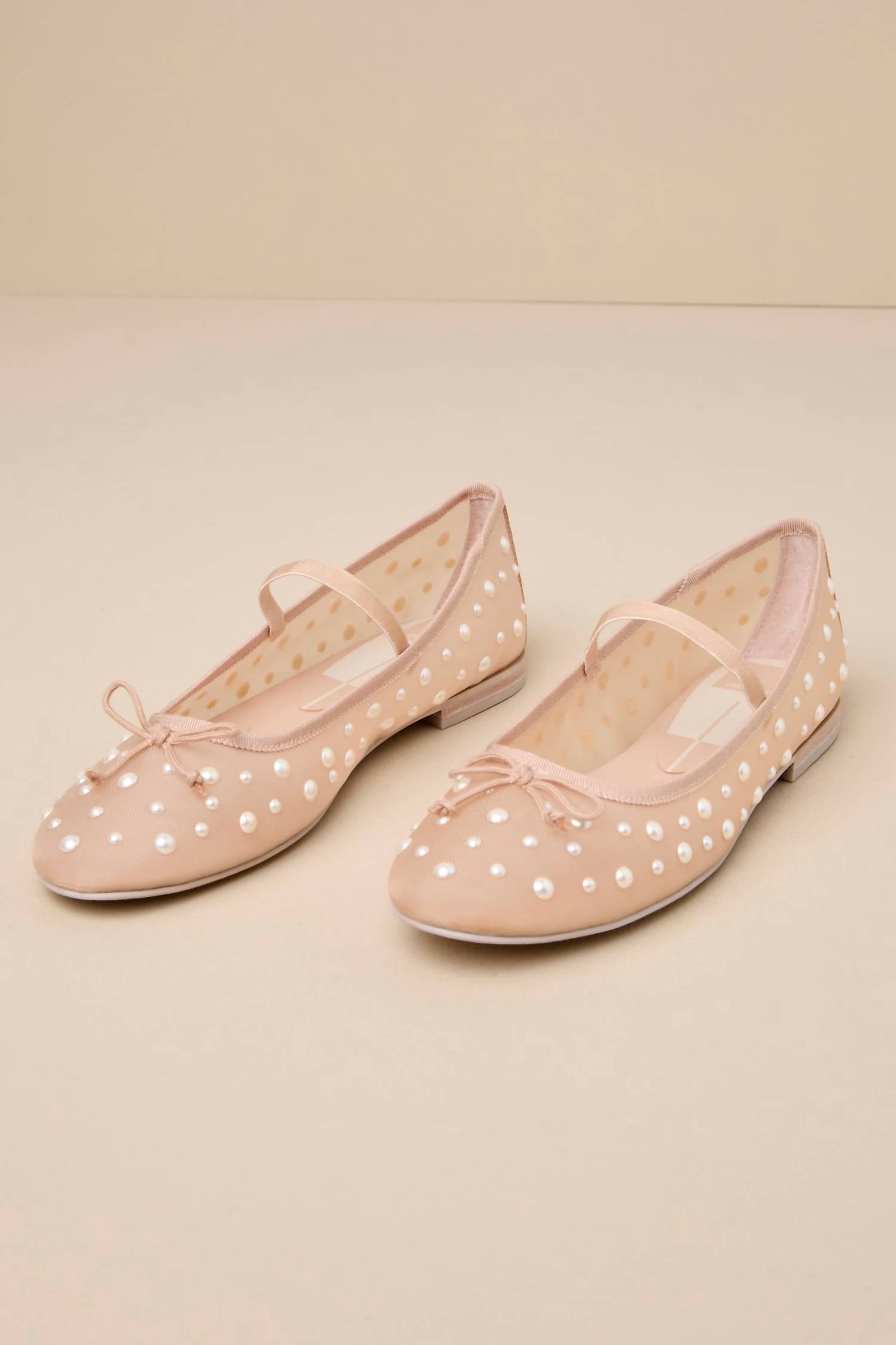A classic loafer that is both comfortable and polished.Step into elegance with the Dolce Vita Women's Blush Pearl Ballet Flats, perfect for a chic spring dinner party. These flats feature a rounded toe crafted from sheer blush mesh with delightful pearl embellishments and a dainty bow detail. Designed with man-made materials, they offer a 0.5-inch flat rubber heel and a nonskid felted rubber sole for added comfort and security. Imported with an elasticized vamp strap and lightly cushioned insole, these flats are both stylish and practical.