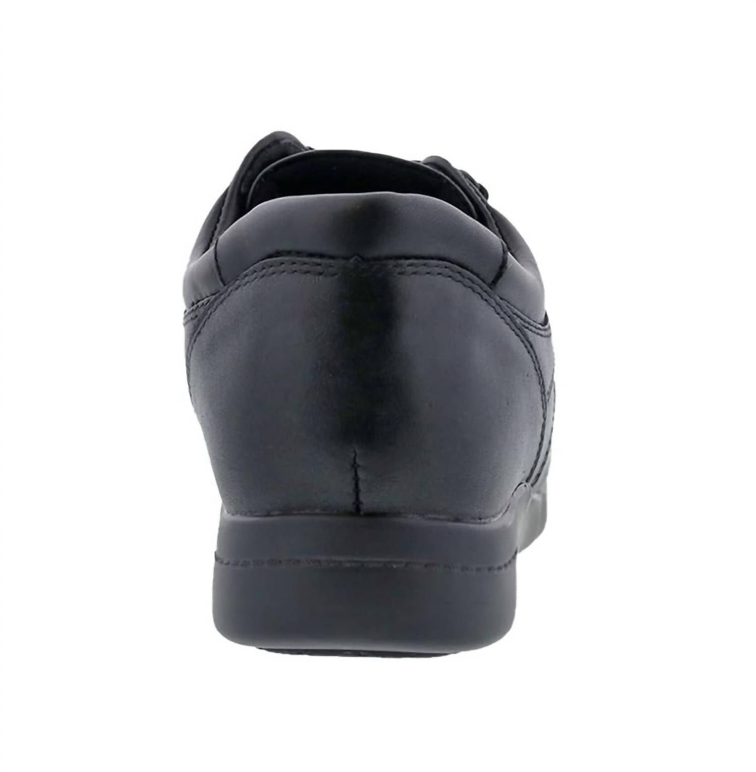 Get your daily steps in with these adorable sneakers.Discover the DREW Women's Blazer Casual Shoes in classic Black Calf, a perfect blend of comfort and style for your everyday wardrobe. Crafted from high-quality leather, these sneakers feature the innovative Plus Fitting System with two removable footbeds and moldable, dual-density inserts for a personalized fit. The design includes a broad toe character and flared outsole with a lightweight polyurethane rocker bottom for ease of movement. Additional features like the Drilex lining with AEGIS Microbe Shield and a foam-padded tongue and collar ensure lasting comfort.