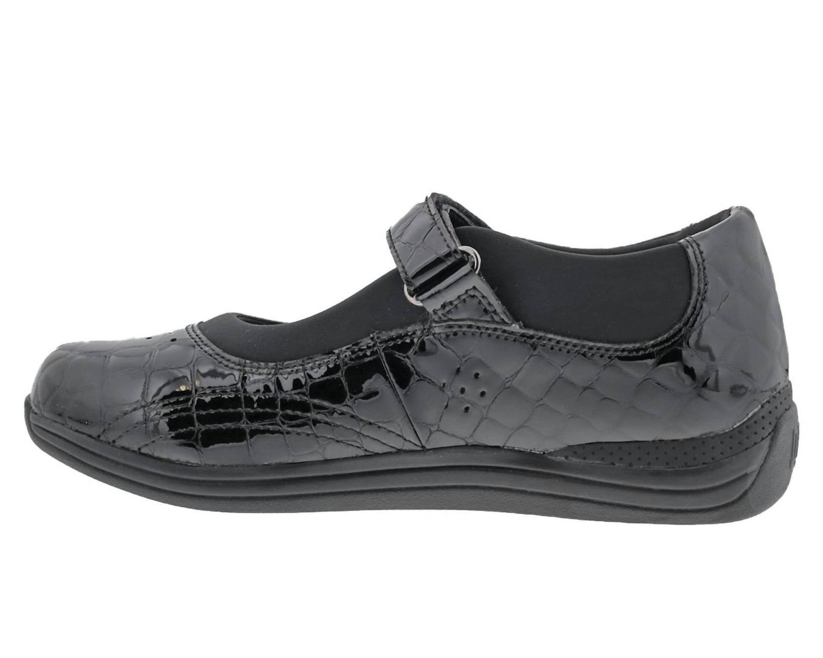 Experience the perfect blend of style and comfort with the Women's Rose Shoes by Drew. These flats feature a simple hook and loop closure, crafted from leather and stretch neoprene for a comfortable fit. Designed for ultimate support, they include the Plus Fitting System with two removable footbeds, a removable dual-density insert, and a polyurethane slip-resistant outsole with a 1.25-inch flat heel. Ideal for a dinner party, these shoes ensure ease on your feet with their stretch fabric lining and soft, foam-padded collar.