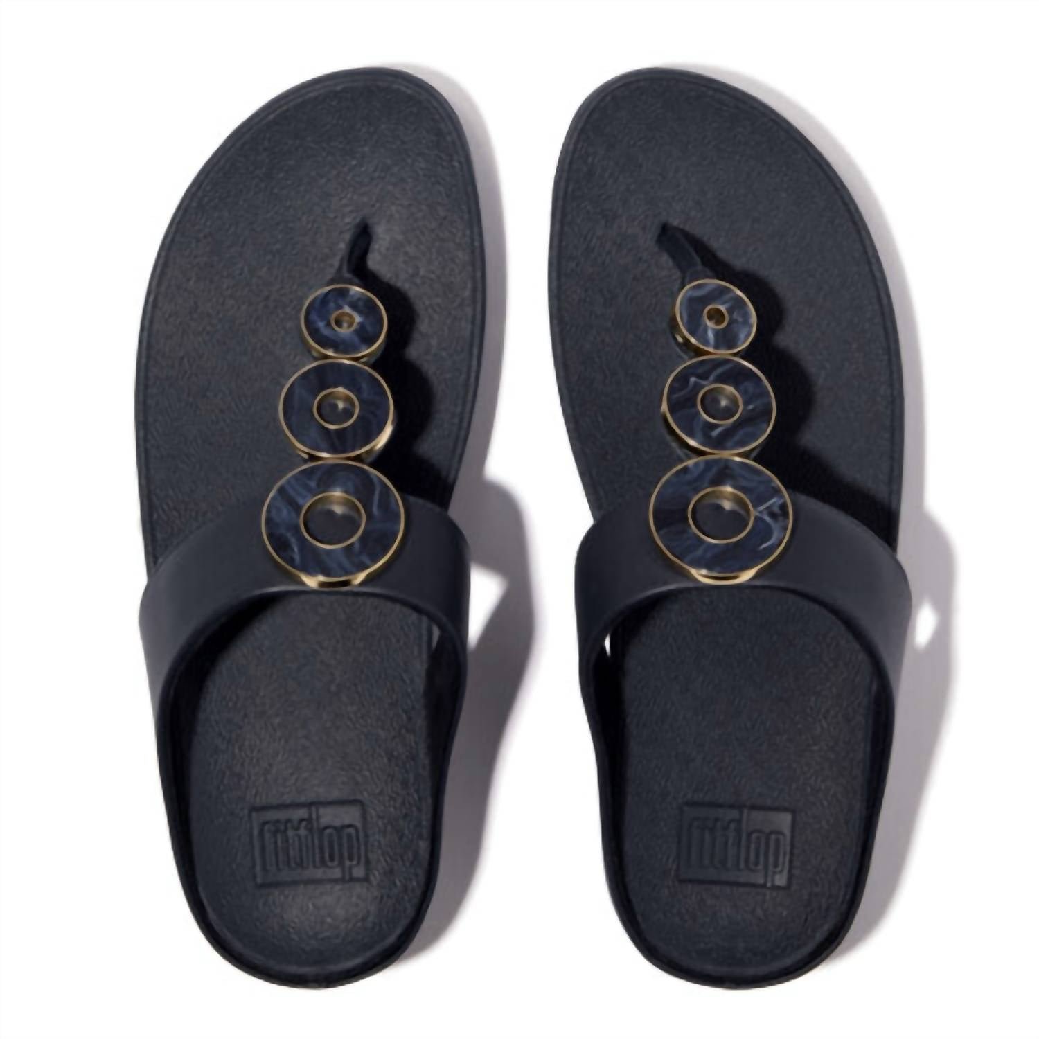 Flowy dresses, cropped pants, and even jumpsuits... this sandal works with them all!Step into effortless elegance with the Fino Resin Toe Post Sandal by FitFlop, crafted in a timeless Midnight Navy. These women's sandals feature a faux leather upper paired with a microfibre-lined fabric interior, offering a sleek and comfortable fit. Built with FitFlop's renowned Microwobbleboard midsoles, they provide all-day cushioning and support, while the slip-on design ensures ease of wear. Complete with a slip-resistant rubber outsole, these sandals deliver both style and functionality for any occasion.
