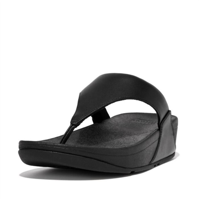 Flowy dresses, cropped pants, and even jumpsuits... this sandal works with them all!Meet the Women's Lulu Toe Post Sandal by FitFlop, crafted for those who appreciate minimalist elegance and unparalleled comfort. With a sophisticated black leather upper and a softly padded leather triangular vamp, these sandals are a seasonal staple. The slip-on design, paired with fabric lining and slip-resistant rubber outsole, ensures ease and stability. Featuring FitFlop's legendary Microwobbleboard midsoles, these sandals promise all-day ergonomic support.