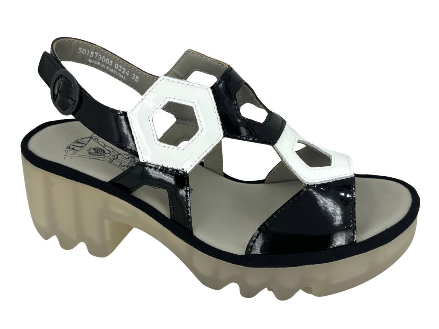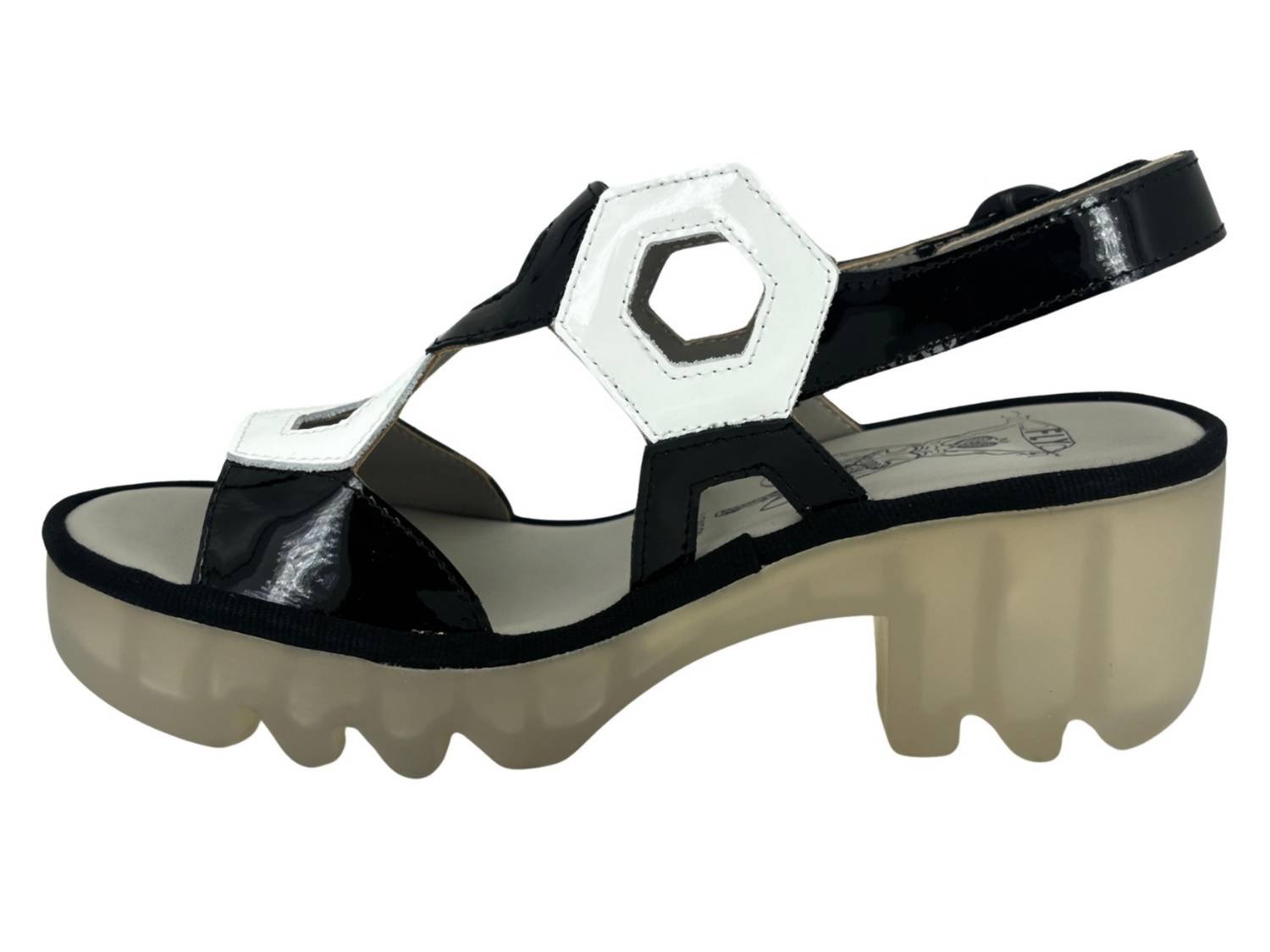 Pair these beauties with your favorite skinny jeans or dress for a night out on the town.The Tewa platform heel sandals combine casual elegance with all-day comfort for effortless style. Featuring a two-toned patent leather design, theyre crafted with a Velcro slingback strap and functional buckle for a secure, customizable fit. A leather-lined interior and cushioned footbed provide breathable comfort and support, while the flexible rubber outsole ensures durability and traction. With a 2.5' heel and 1' platform, these sandals offer a stylish lift with balanced stabilityperfect for versatile wear.