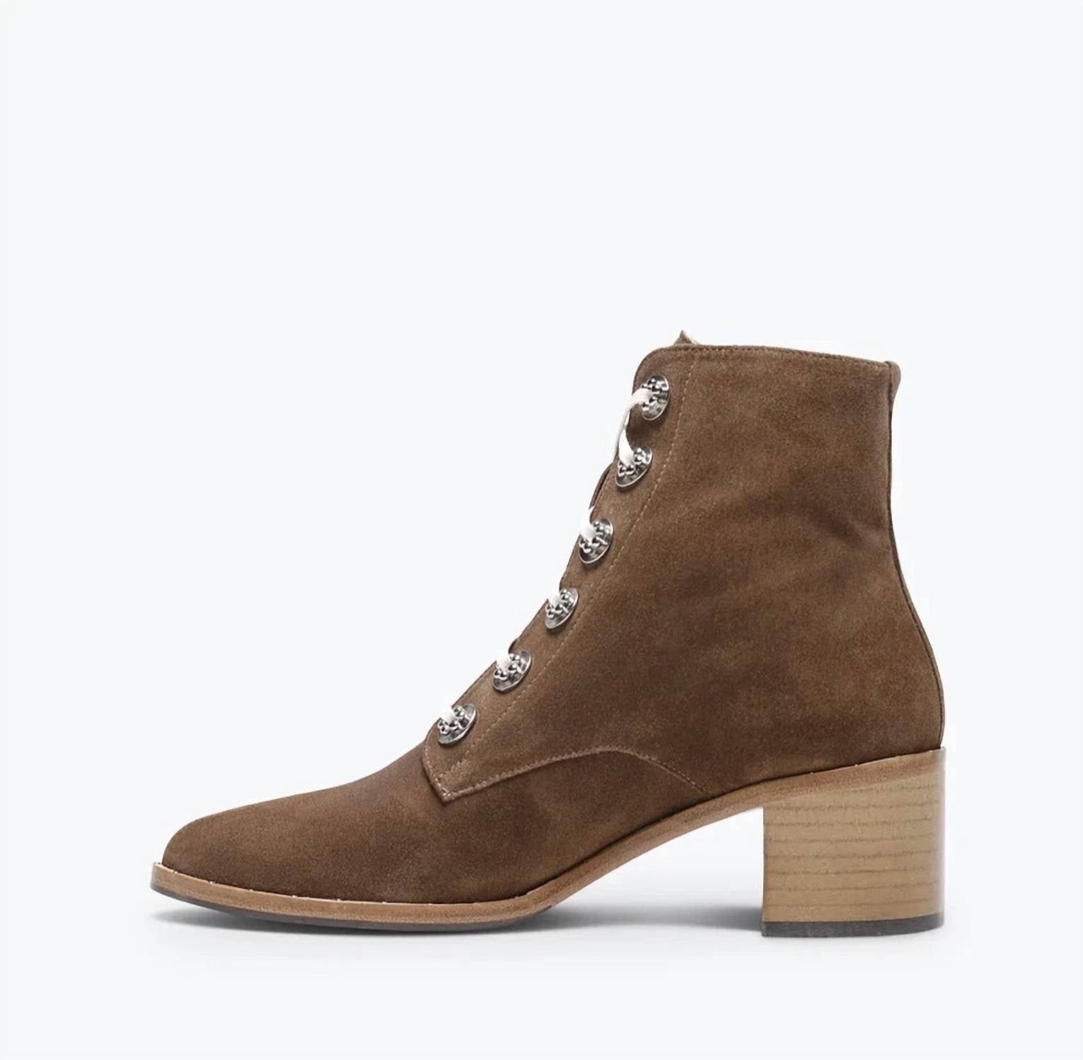 Say hello to the perfect, most versatile boot. The ankle height makes this style easily transition from day to night. Wear them with your favorite skinny jeans and tee for a more laid back look, or pair them with your favorite mini dress and jacket for a night out on the town.Step into style with the Ace Lace Up Combat Boot by FREDA SALVADOR, crafted in rich Brown Suede for the ultimate fall statement. Designed with 100% Italian leather and a 2.5' leather stacked block heel, this boot showcases custom metal hardware and a studded welt for added edge. Handmade in Spain, it features a 100% leather sole with a rubber layer for enhanced durability. Perfect for a grunge-inspired look at music festivals or ringing in the New Year.