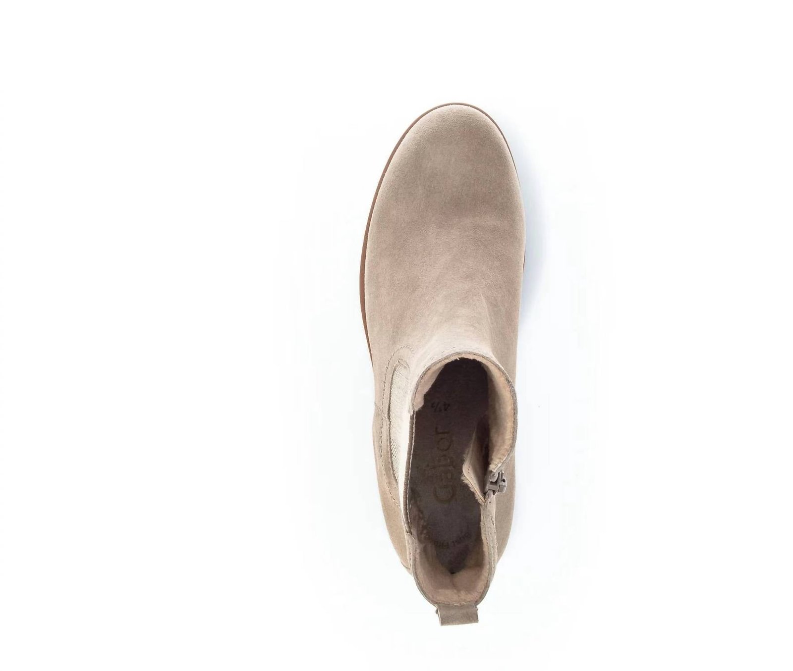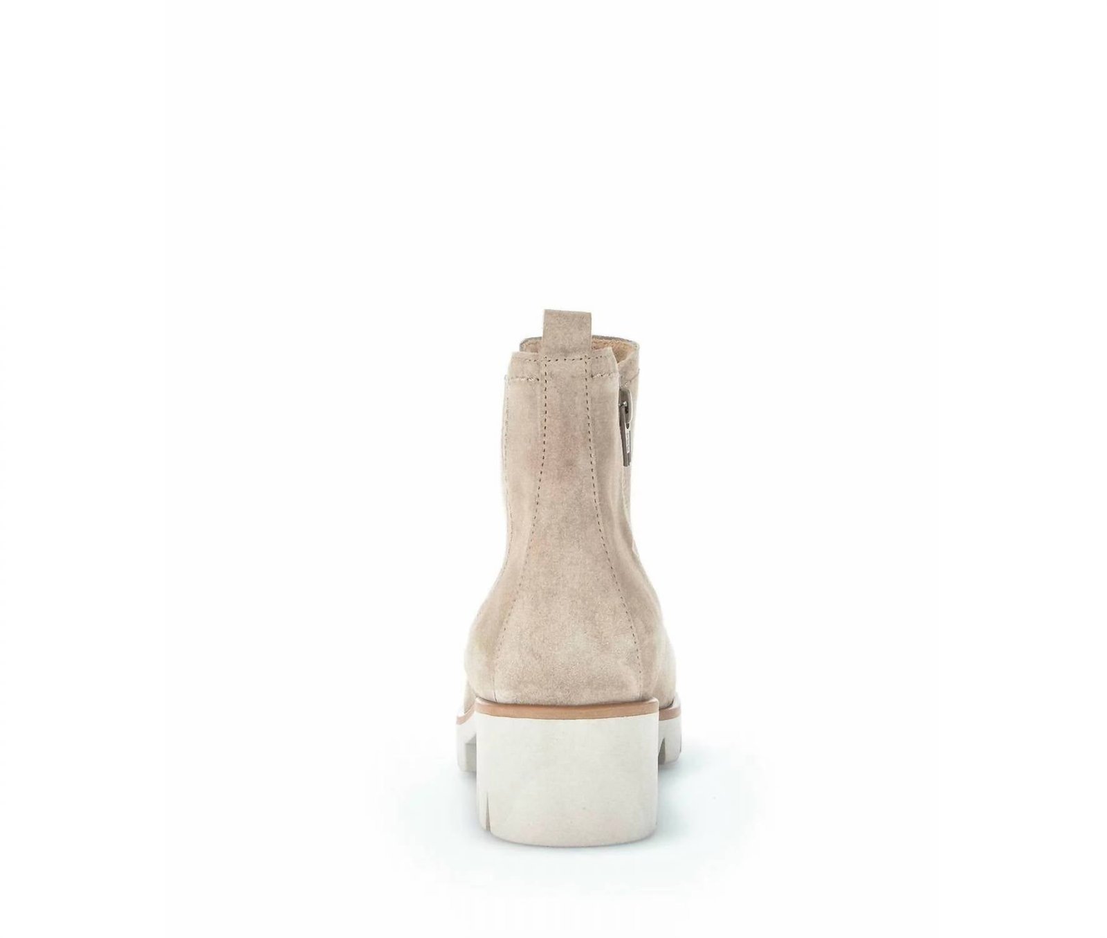 Say hello to the perfect, most versatile boot. The ankle height makes this style easily transition from day to night. Wear them with your favorite skinny jeans and tee for a more laid back look, or pair them with your favorite mini dress and jacket for a night out on the town.Introducing the Women's Zip Block Heel Bootie by Gabor Fashion, a chic choice for your fall evening events. Crafted from luxurious suede in a versatile beige hue, these booties feature a comfortable 5 cm block heel and a 13 cm shaft height, perfect for workwear or holiday outings like Thanksgiving. The mid-width design with a round toe ensures a great fit, while the convenient zipper closure adds ease to slipping them on and off. Let these stylish ankle boots elevate your ensemble with their understated elegance.
