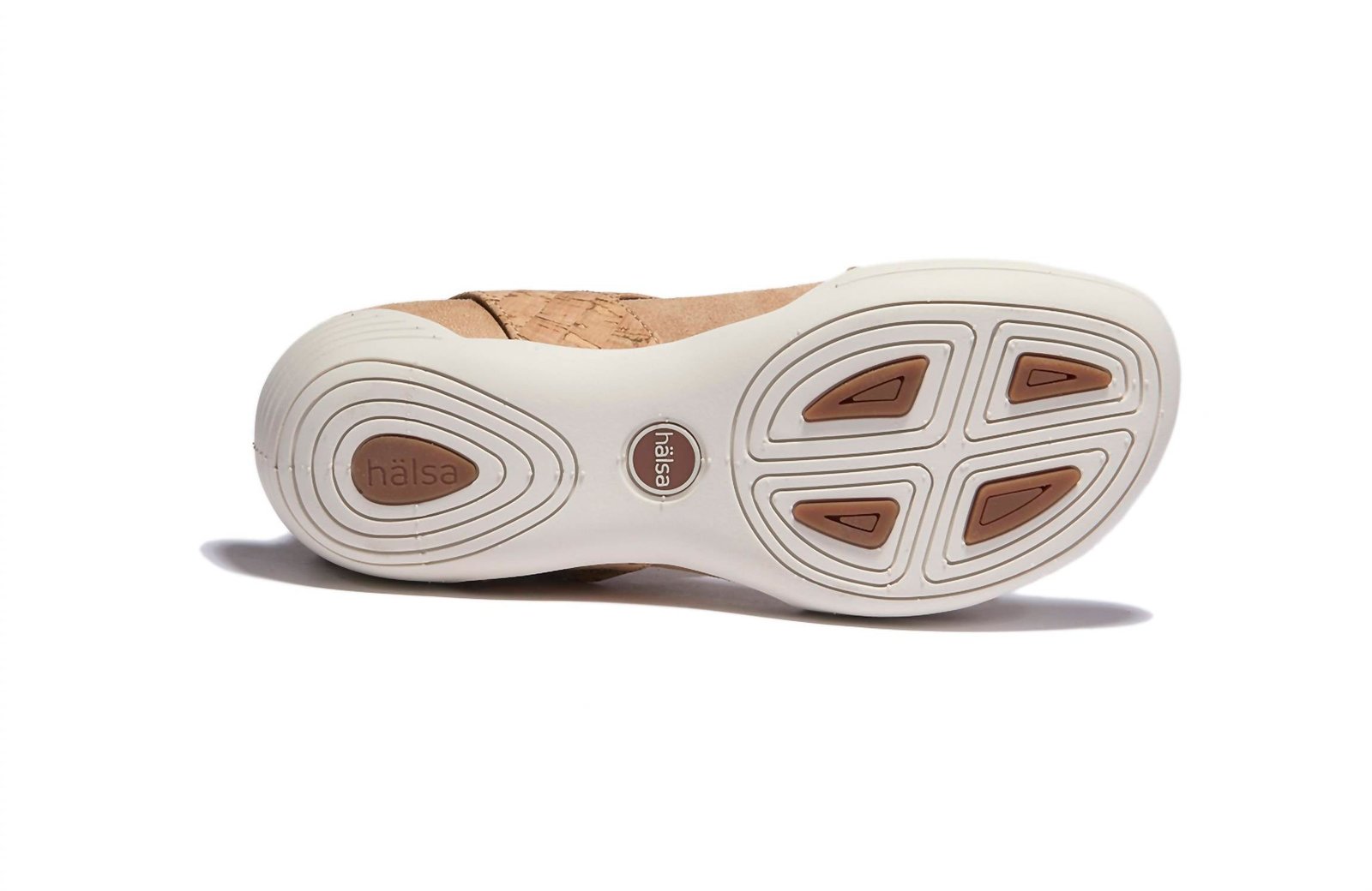 Flowy dresses, cropped pants, and even jumpsuits... this sandal works with them all!Step into comfort and style with the Halsa Footwear Women's Denia Ankle Strap Sandal in a chic cork hue. Designed with adjustable hook-and-loop straps, these sandals offer a secure fit, while the 1 1/2' platform heel ensures all-day ease. Its leather upper is complemented by a cushioned EVA footbed with arch support and an antimicrobial finish to keep odors at bay. Imported and crafted for those sunny vacations, these sandals offer both practicality and elegance for any spring occasion.