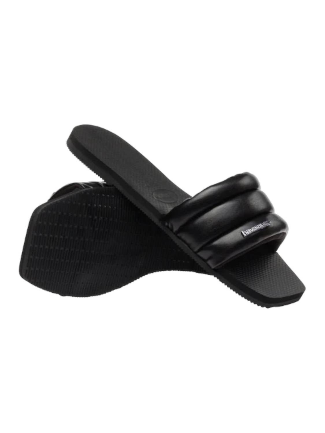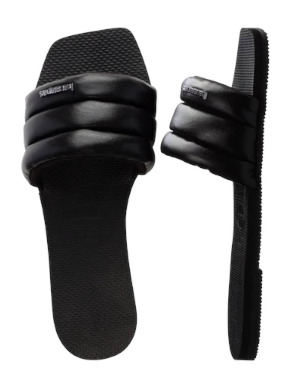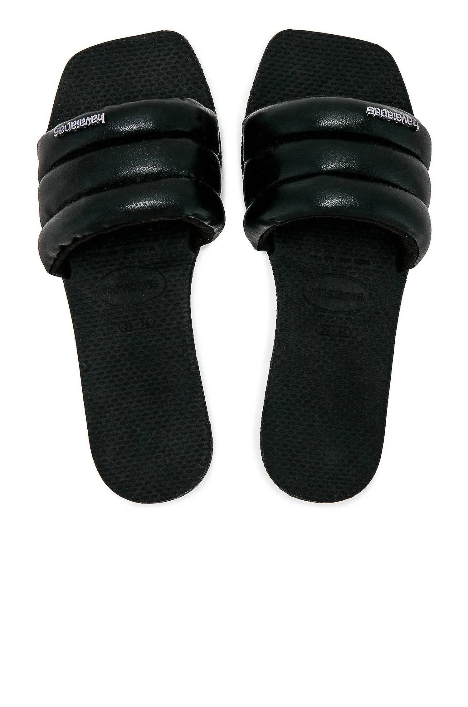 This sandal will take you from brunch to dinner and everything in between.Step into simplicity with the Havaianas Women's You Milan Slide Sandals, a chic nod to Milanese fashion. Designed with a square open toe and single strap slide, these sandals boast a padded upper and signature textured footbed for all-day comfort. Crafted from premium Brazilian rubber and finished with a metallic Havaianas logo, they're perfect for a minimalist beach day look. Composition: 100% rubber. Origin: Made in Brazil.