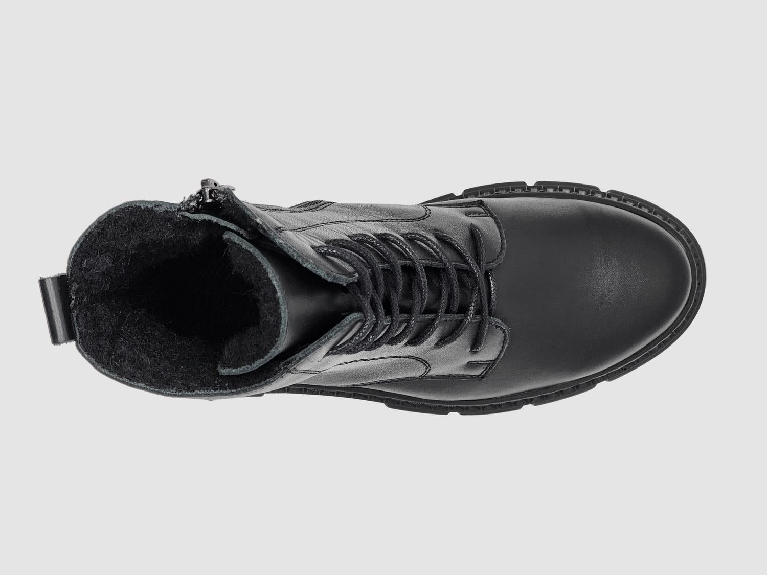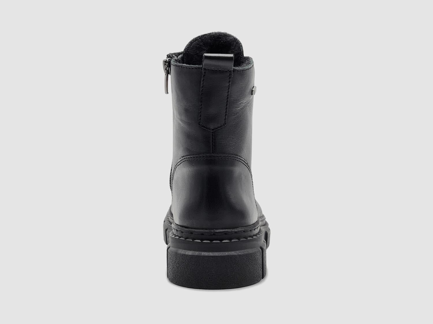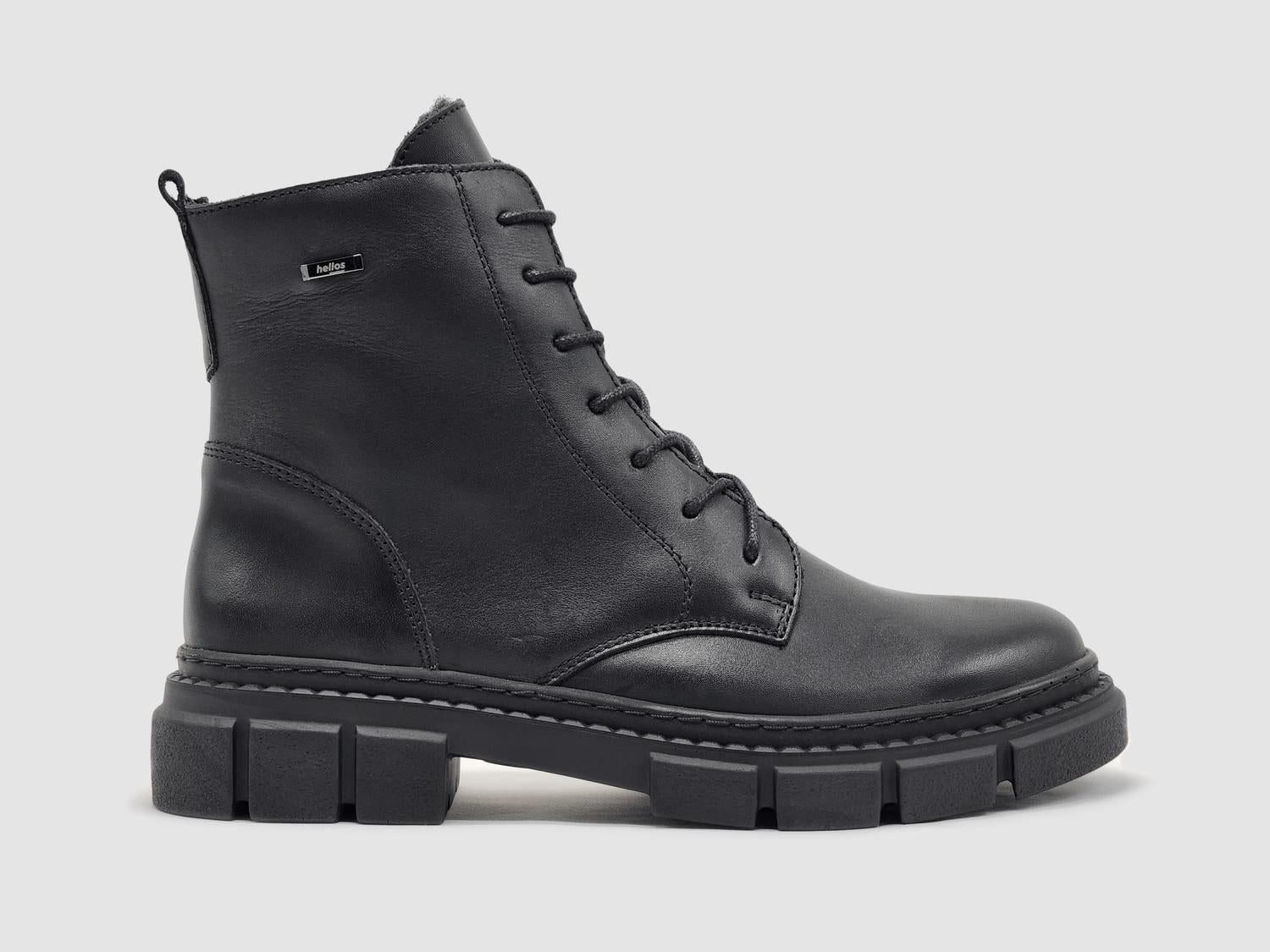 Say hello to the perfect, most versatile boot. The ankle height makes this style easily transition from day to night. Wear them with your favorite skinny jeans and tee for a more laid back look, or pair them with your favorite mini dress and jacket for a night out on the town.Step into sophistication with the Women's Hebe Fur-lined Zip-up Leather Boots by Helios, a sleek black design crafted with premium European leather. These ankle boots boast a convenient zip-up closure and mid-height silhouette, ensuring easy wear and timeless style. The wool lining inside is perfect for keeping your feet warm and comfortable during colder days. Made for those who appreciate top-quality craftsmanship in every step.