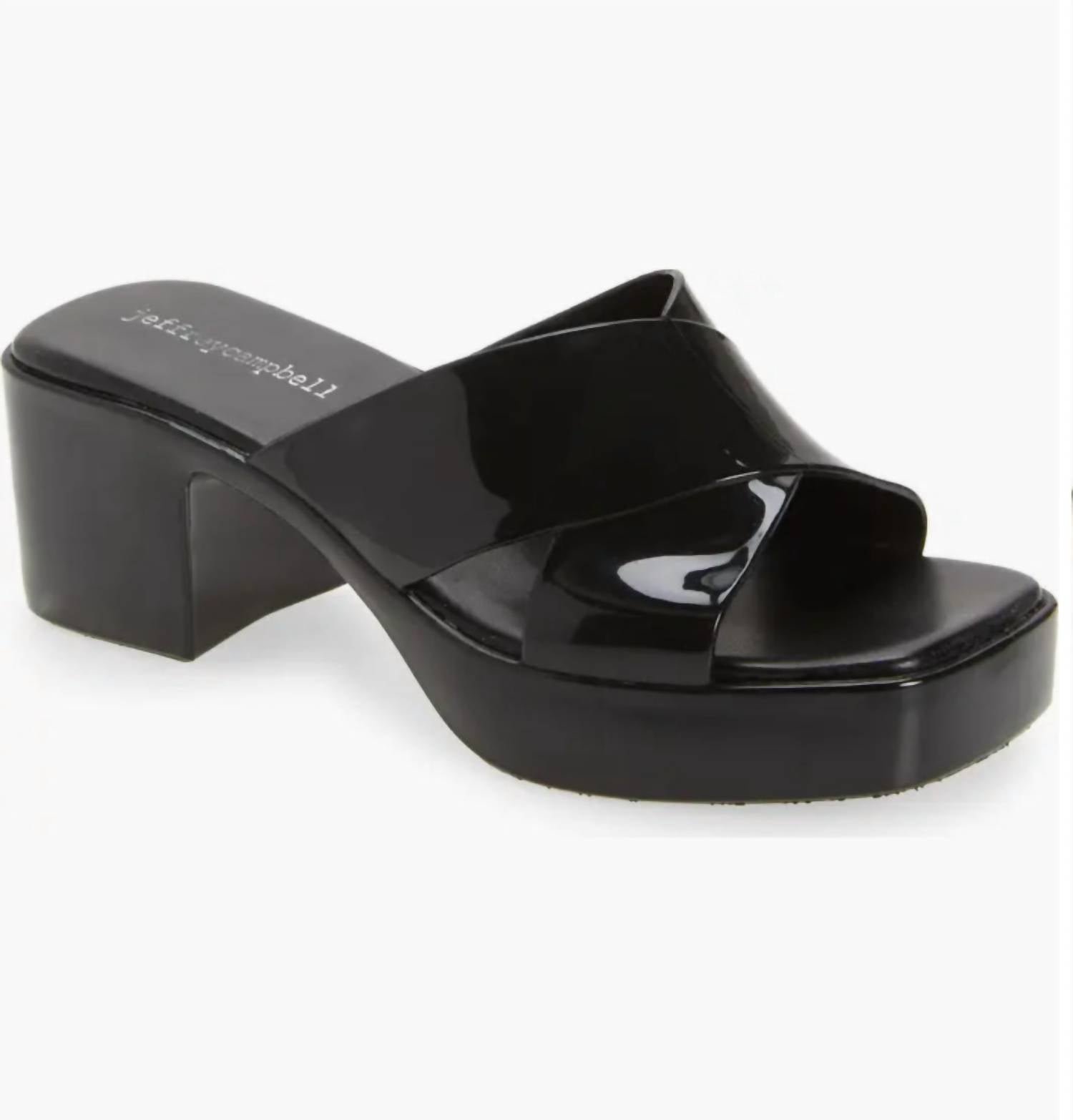 This sandal will take you from brunch to dinner and everything in between.Step into a 90s vibe with the Jeffrey Campbell Bubblegum Platform Sandal in glossy black, a perfect pick for your next beach day or Thanksgiving outing. These sandals feature an open toe design with a stylish block heel elevating you with a mid heel height of 2.5 inches. Expertly crafted to capture the essence of 90s fashion, they are ideal for fashion-forward women looking to make a statement. Please note that these sandals are non-returnable, so add them to your collection if you're confident about channeling your inner retro goddess.