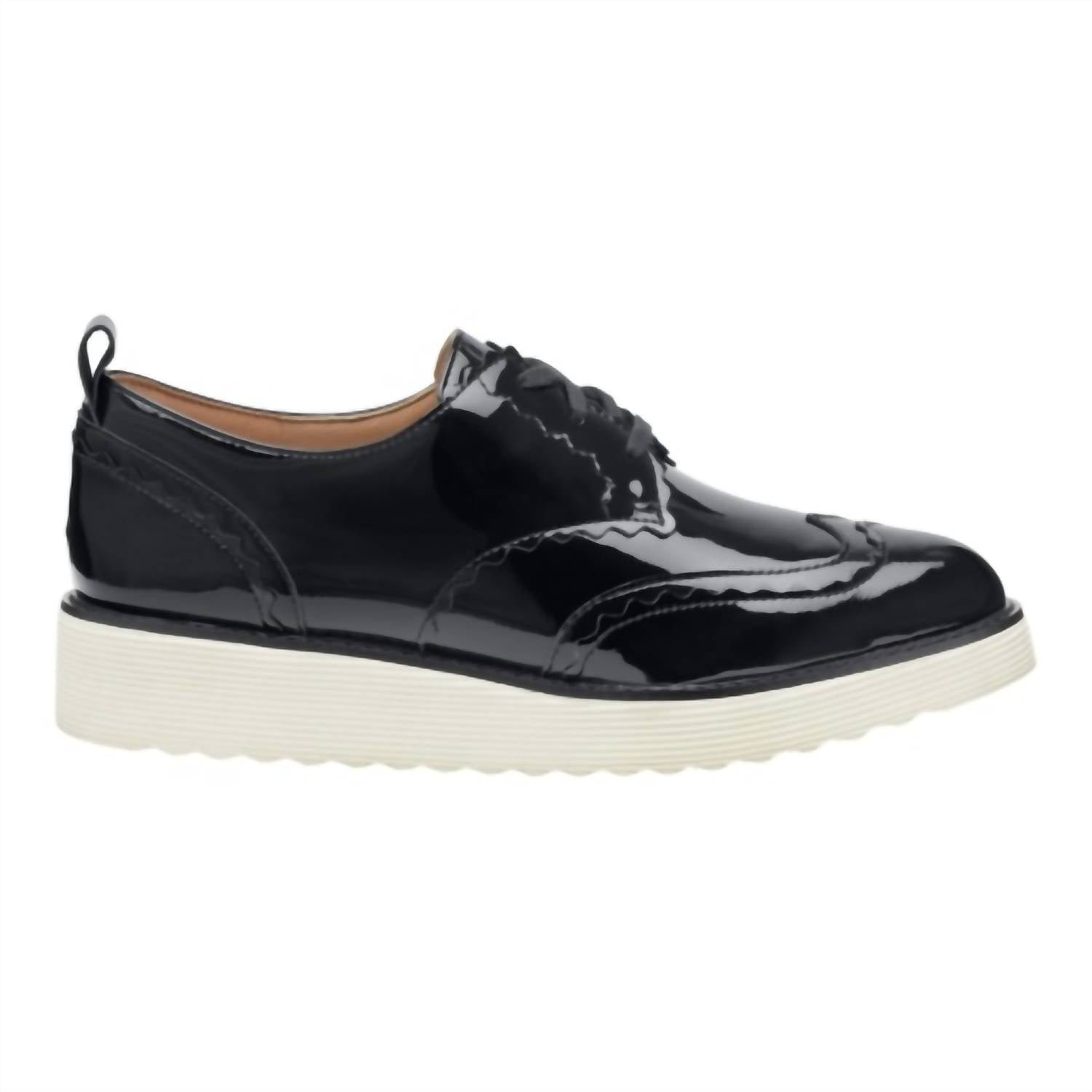 A preppy yet feminine take on the classic loafer.Discover the Women's Mitzi Scalloped Wingtip Shoes by Johnston & Murphy, a perfect amalgamation of elegance and comfort. Crafted from gleaming black patent leather, these shoes feature scalloped accents for a touch of feminine polish. They come with a cushioned leather-covered footbed and are lined with leather and microfiber for a luxurious feel. Designed with a lightweight TRUFOAM EVA ribbed sole, these flats offer a bouncier experience, ideal for an evening event during the summer season.