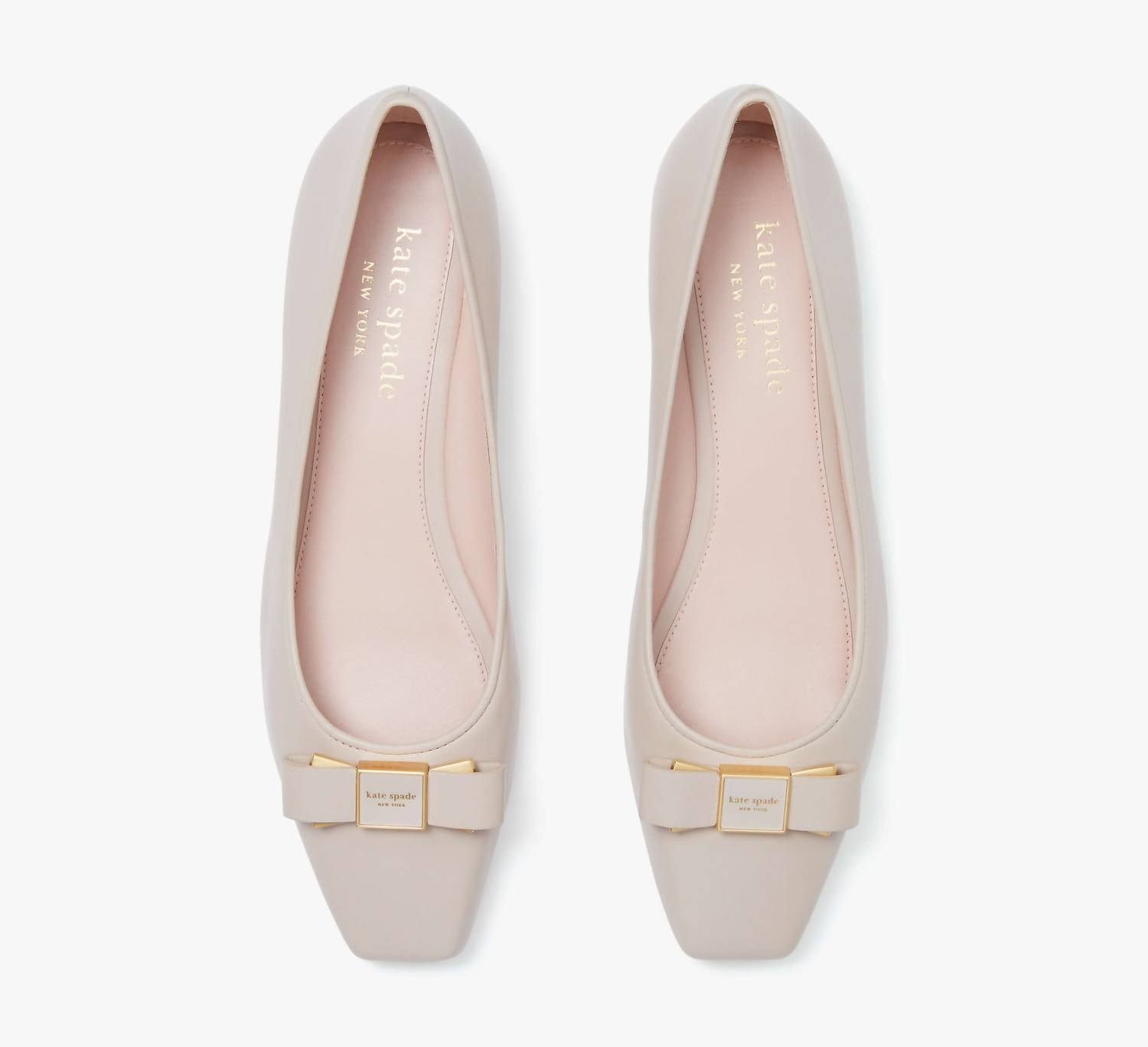 A preppy yet feminine take on the classic loafer.Discover the Bowdie Ballet Flats by Kate Spade, a blend of elegance and comfort for the modern woman. With their minimalist 1/4' flat heel and squared toe, these flats offer a chic slip-on style. Crafted with a leather upper and lining combined with a manmade sole, they promise durability and true-to-size fit for effortless wear. Available in timeless Black Leather and Nude Leather, these flats are a versatile addition to any wardrobe in the subtle Pale Vellum hue.