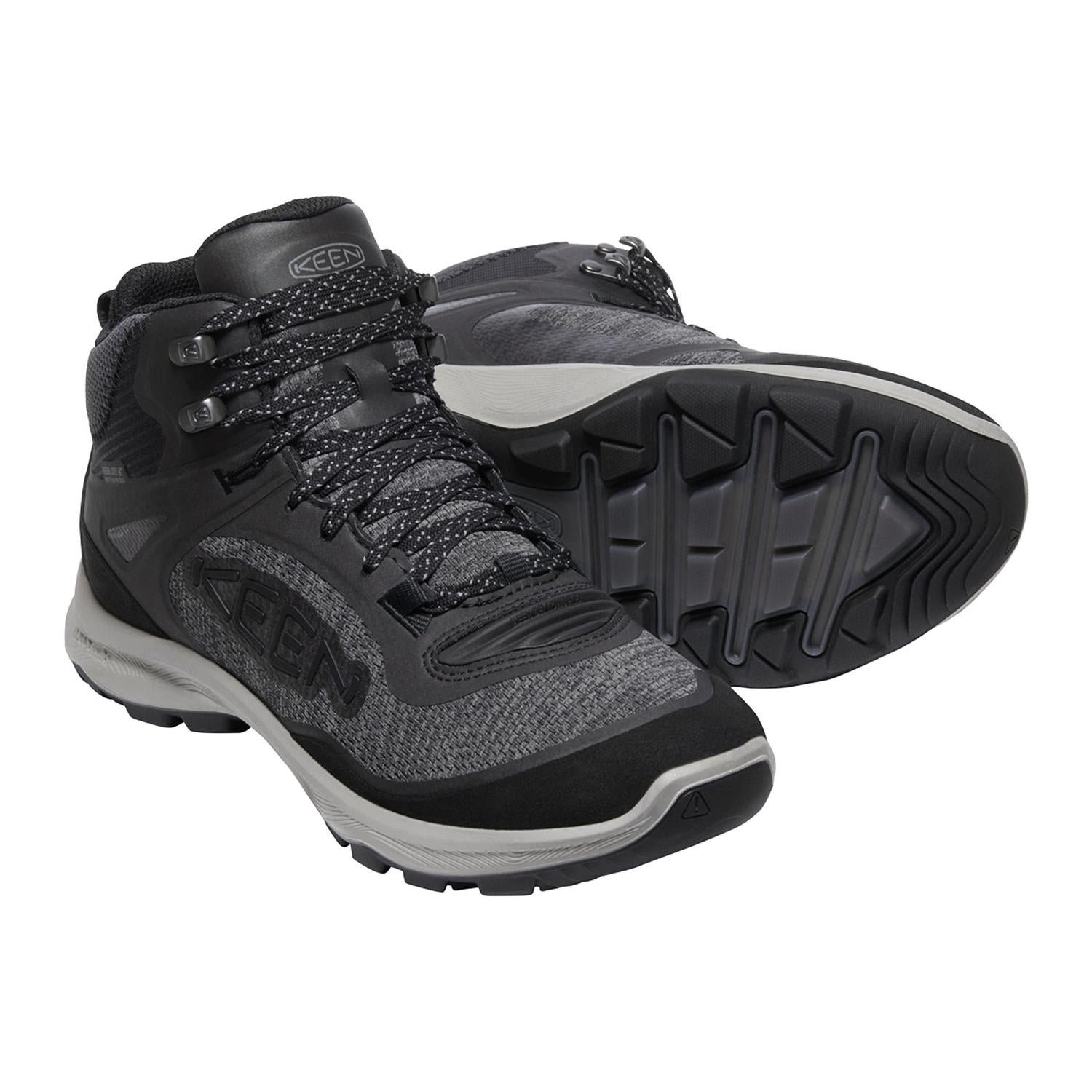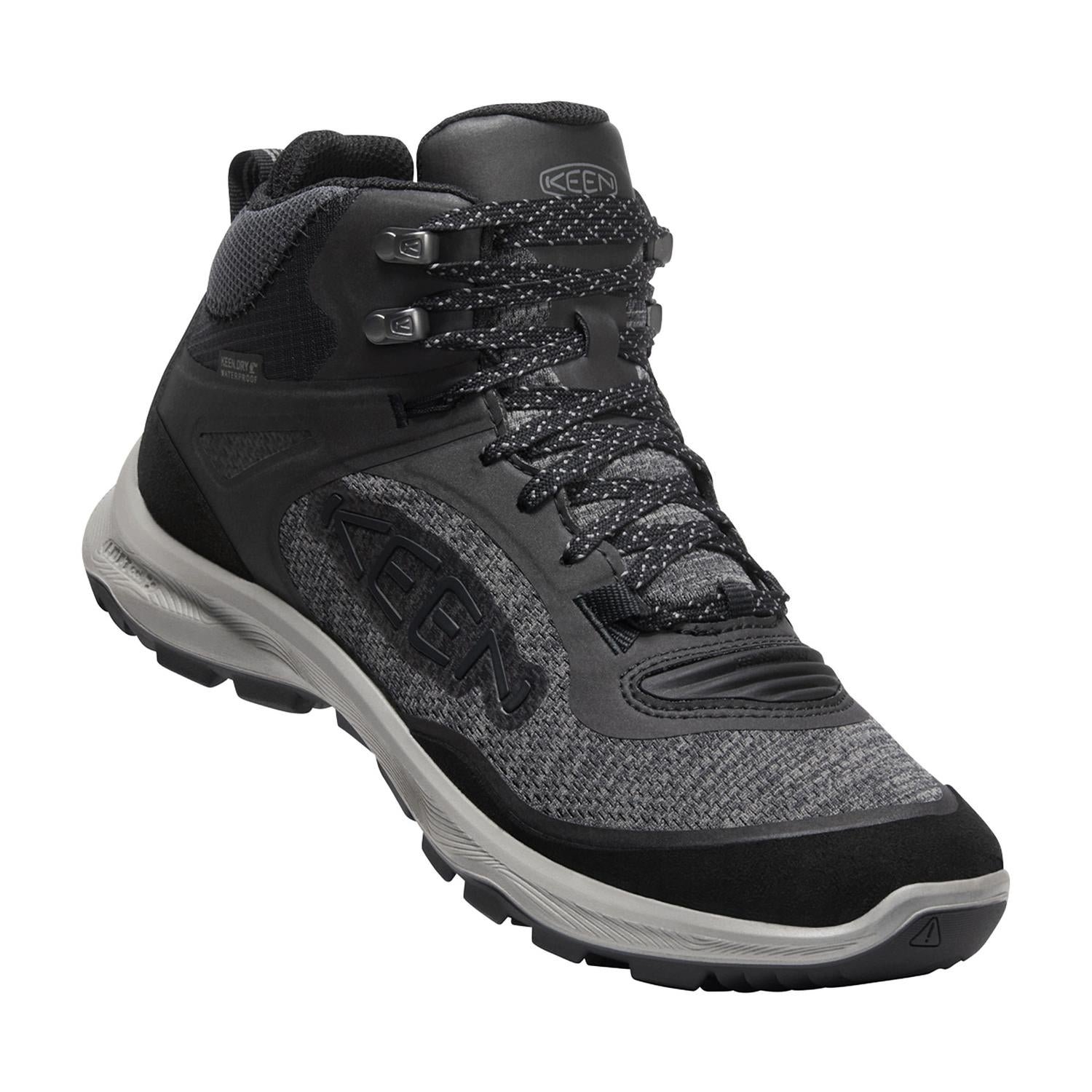 Rainy day No problem! The cutest and most comfortable rainboots of the season.Step into adventure with the Women's Terradora Flex Mid Waterproof Hiking Boots by Keen, designed in a black and steel grey colorway. These boots feature a performance mesh upper with durable TPU overlays, ensuring longevity and protection on the trail. Experience the ease of every step with KEEN BELLOWS.FLEX technology in the forefoot, complemented by a waterproof KEEN.DRY membrane. The boots also boast a contoured fit specific to women's feet, a removable PU insole with arch support, and a quick-dry lining, making them ideal for long hikes. Care: Gently brush with a soft, damp sponge to clean and air dry away from heat.