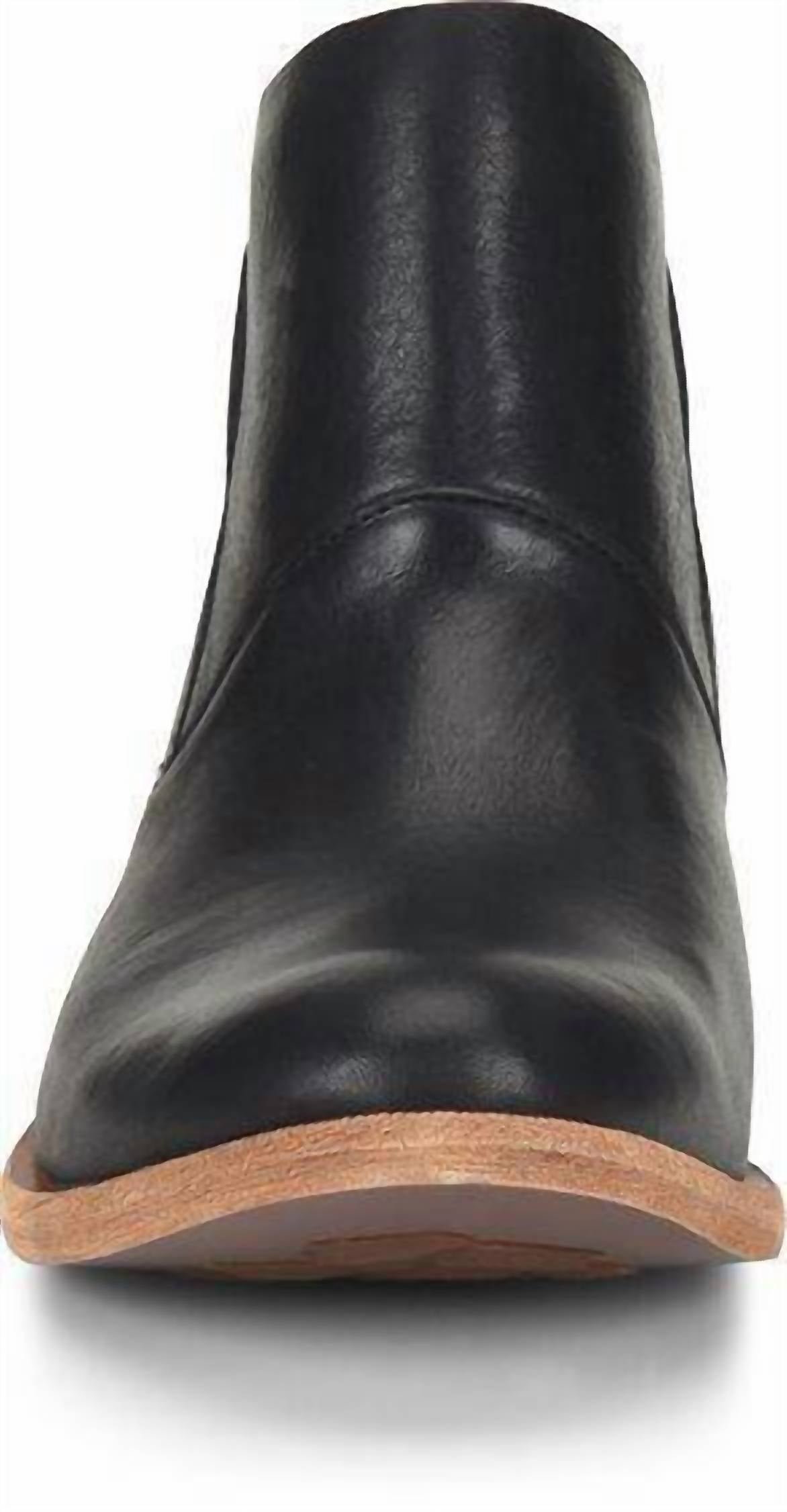 Say hello to the perfect, most versatile boot. The ankle height makes this style easily transition from day to night. Wear them with your favorite skinny jeans and tee for a more laid back look, or pair them with your favorite mini dress and jacket for a night out on the town.Introducing the Women's Ryder Leather Boot by KORK-EASE, an elegant ankle bootie in sleek black. This standout piece is available in full-grain leather or suede, featuring a leather lining and cushioned leather footbed for comfort. With a durable blend of leather and rubber outsole and a modest 1-inch block heel, this boot is perfect for fall travel. Its round toe design complements its monochrome trend, ensuring you step out in effortless style.