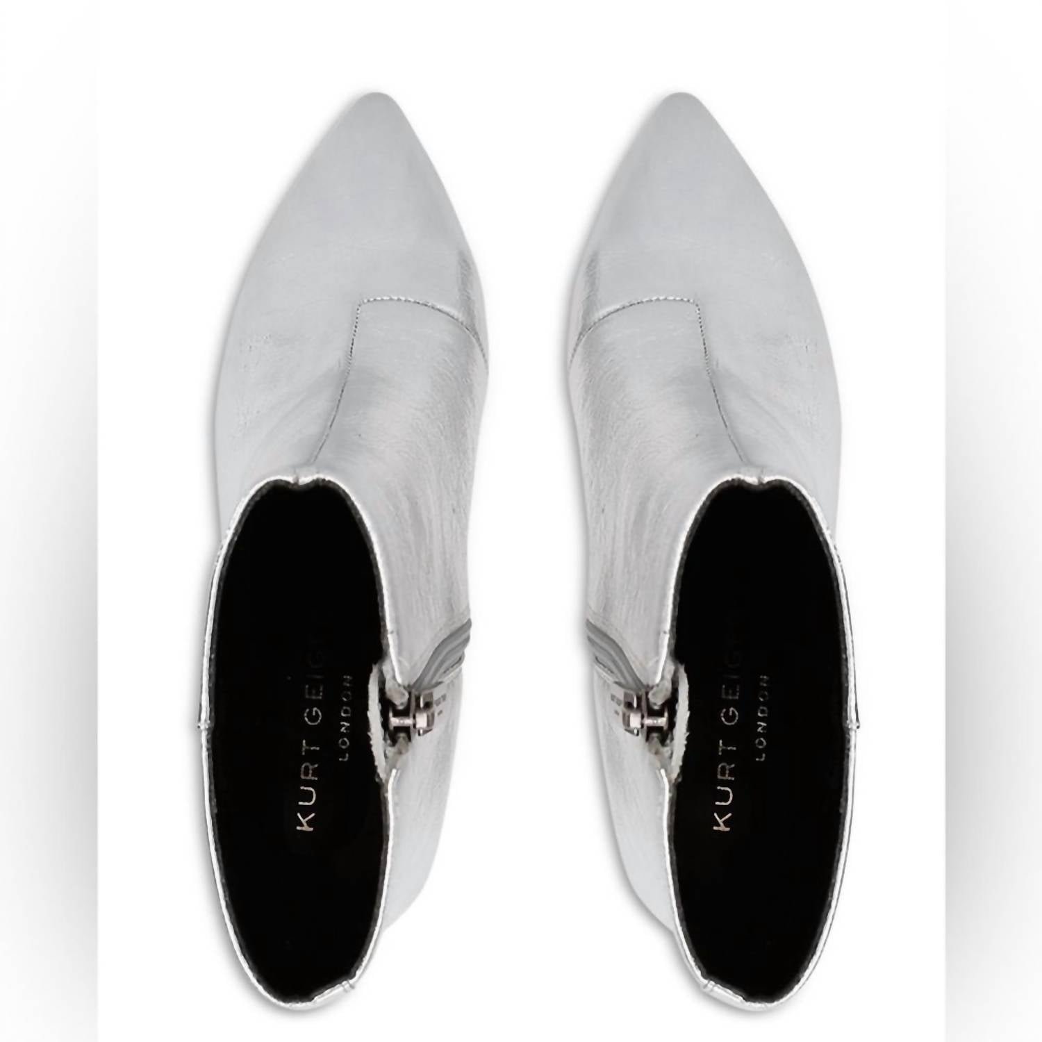 Say hello to the perfect, most versatile boot. The ankle height makes this style easily transition from day to night. Wear them with your favorite skinny jeans and tee for a more laid back look, or pair them with your favorite mini dress and jacket for a night out on the town.Step into quiet luxury wearing the Women's Burlington Block Heel Ankle Boots by Kurt Geiger London. Crafted with a stunning metallic leather upper, these stylish ankle booties feature an elegant eagle head detail and a convenient inner zip closure. Constructed with polyester lining and a synthetic sole, they offer both comfort and durability, finished with a 2.5-inch mid-height block heel. Ideal for holiday parties, these imported beauties fit true to size and are designed to make any outfit shine this summer.