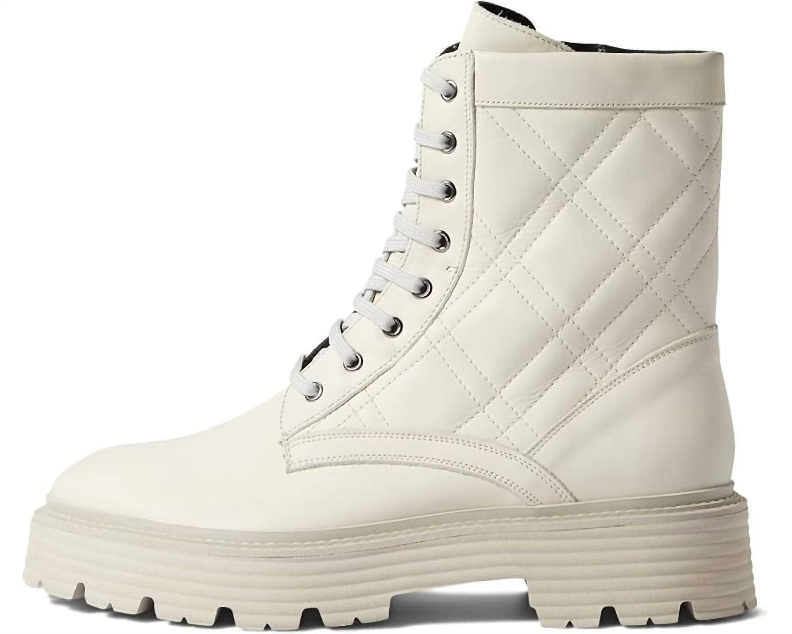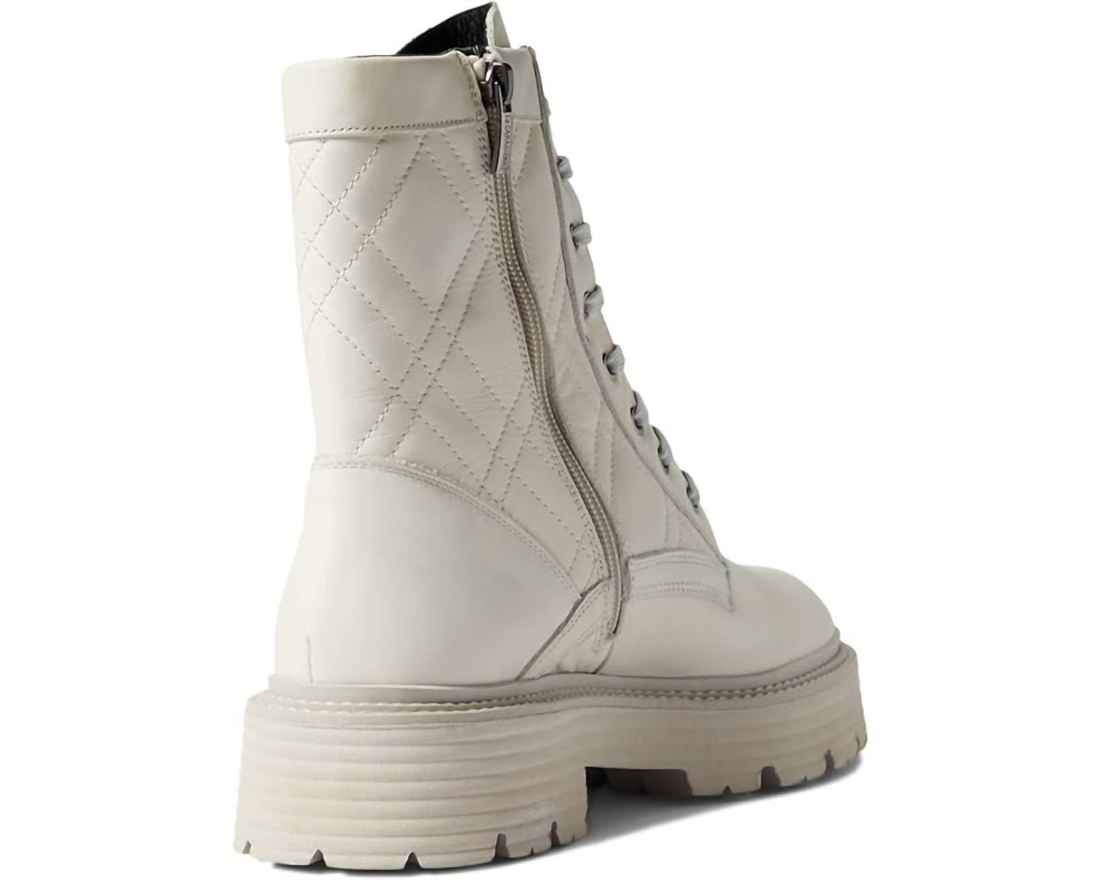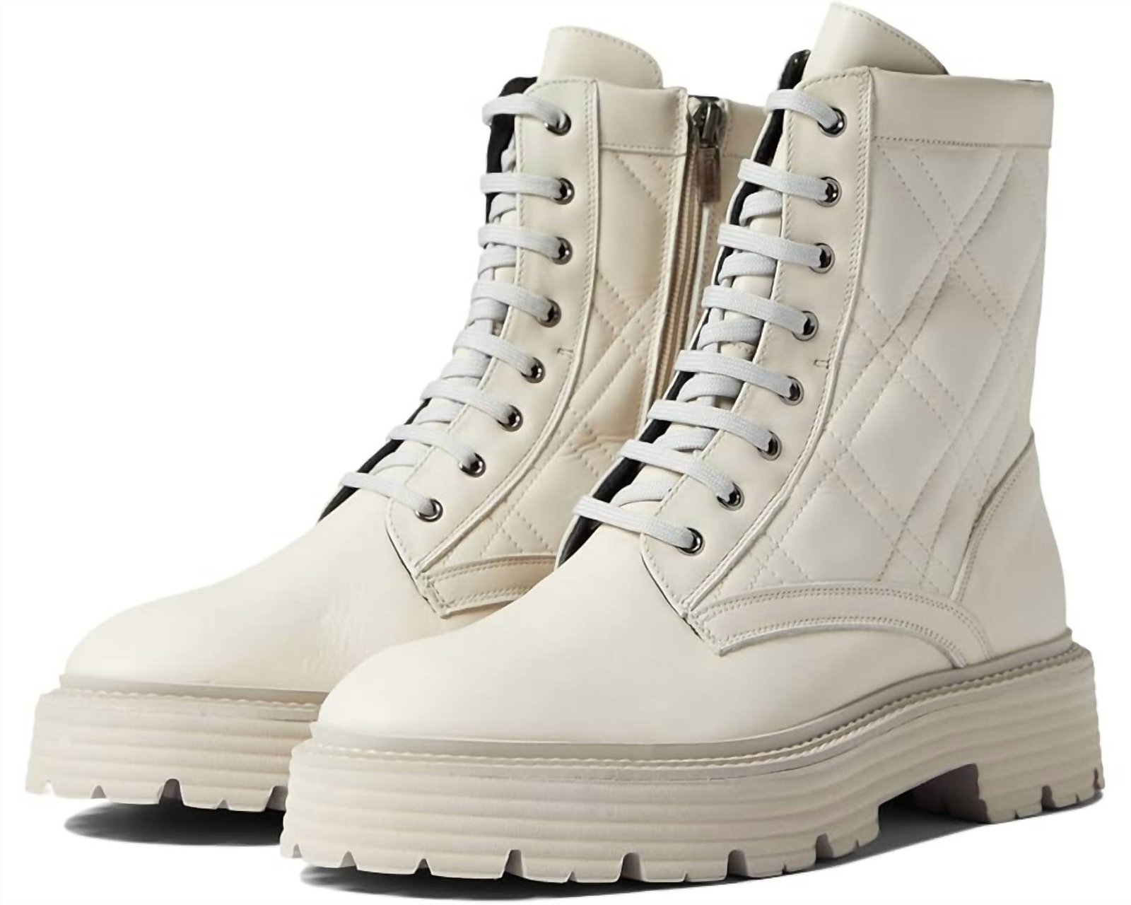 A stylish boot with a comfortable fit and the perfect amount of height. These classic boots are the perfect addition to any outfit and can be worn season after season.Step up your style with the La Canadienne Women's Yasmine Quilted Leather Lace-Up Boots in an elegant Bone Leather finish. These heeled boots feature a luxurious leather upper, lining, and footbed, complemented by a cushioned memory foam insole for all-day comfort. Designed with a traditional lace-up and zippered closure, they are crafted from waterproof Italian leather using City Dry technology, and rest on a 2-inch chunky heel with a 1.5-inch platform. Made in Spain, these boots offer a thoughtful blend of fashion and functionality, perfect for a vacation or any summer occasion.
