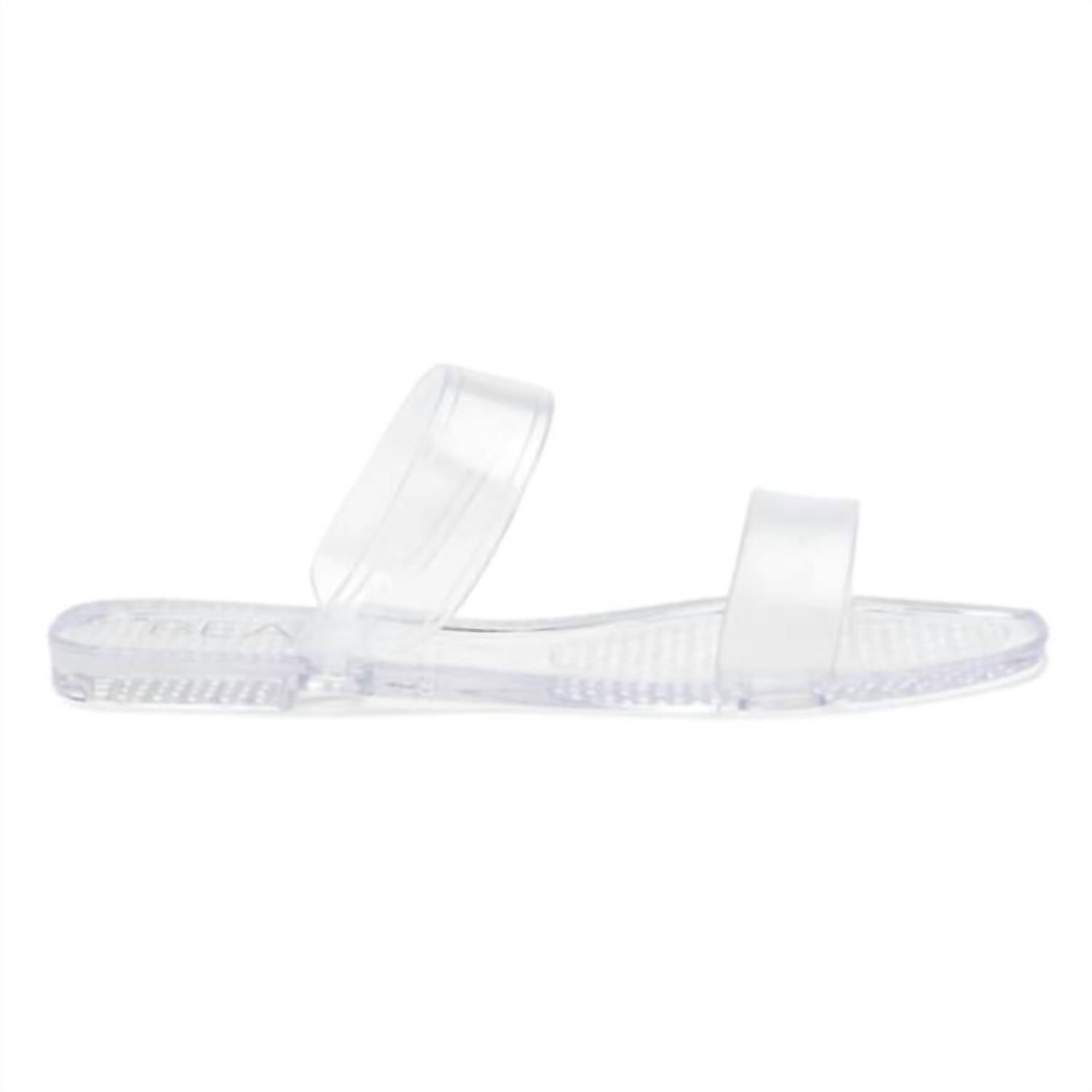 Flowy dresses, cropped pants, and even jumpsuits... this sandal works with them all!Introducing the Women's Drift Jelly Sandal by Matisse, a must-have for your summer wardrobe in versatile clear. These sandals feature a squared toe design and a comfortable flat heel, ideal for beach days and minimalist style enthusiasts. With a low heel height ranging from 1 1/4' to 2', they offer both style and comfort. Perfect for Mother's Day or any sunny occasion.