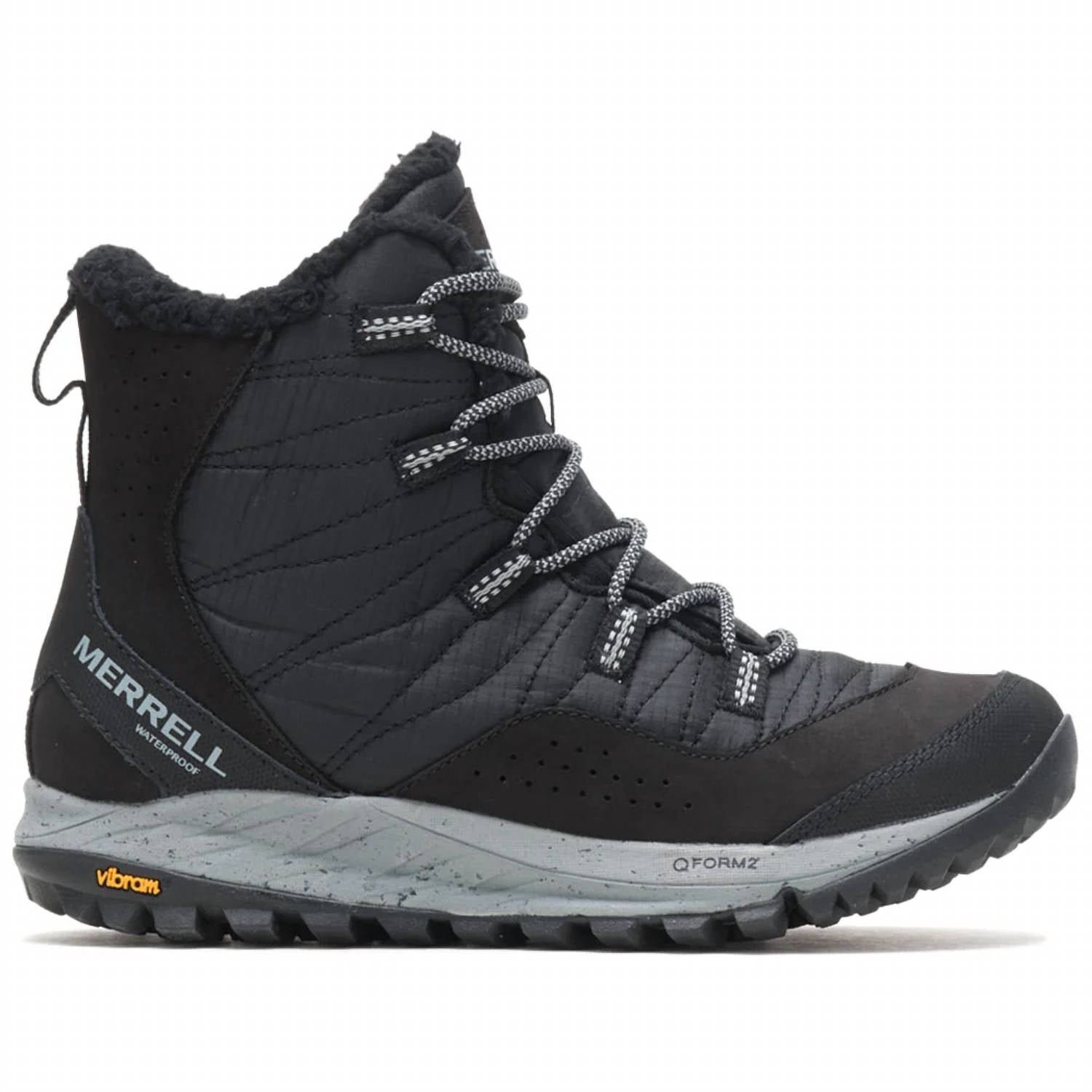 Upgrade your shoe game with these stylish lace-up boots, designed to merge sophistication and comfort. You'll be reaching for these shoes season after season.Introducing the Women's Antora Waterproof Sneaker Boot by MERRELL, a remarkable fusion of sneaker-light comfort and reliable support. Tailored for women who embrace adventures in cold weather, this boot features a waterproof PU coated leather and ripstop textile upper. The breathable mesh lining and 100 grams of lightweight insulation ensure comfort without bulk. Additionally, it includes 50% recycled EVA foam insole and a Vibram Icetrek outsole for unparalleled grip. Enjoy the eco-friendly design with 100% recycled laces, as you conquer winter terrains in style.