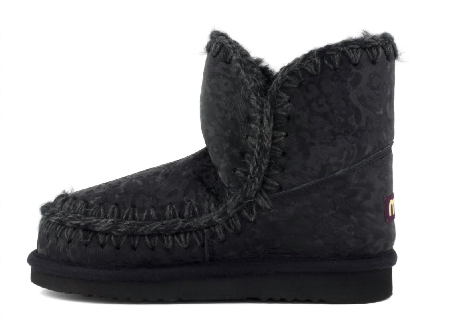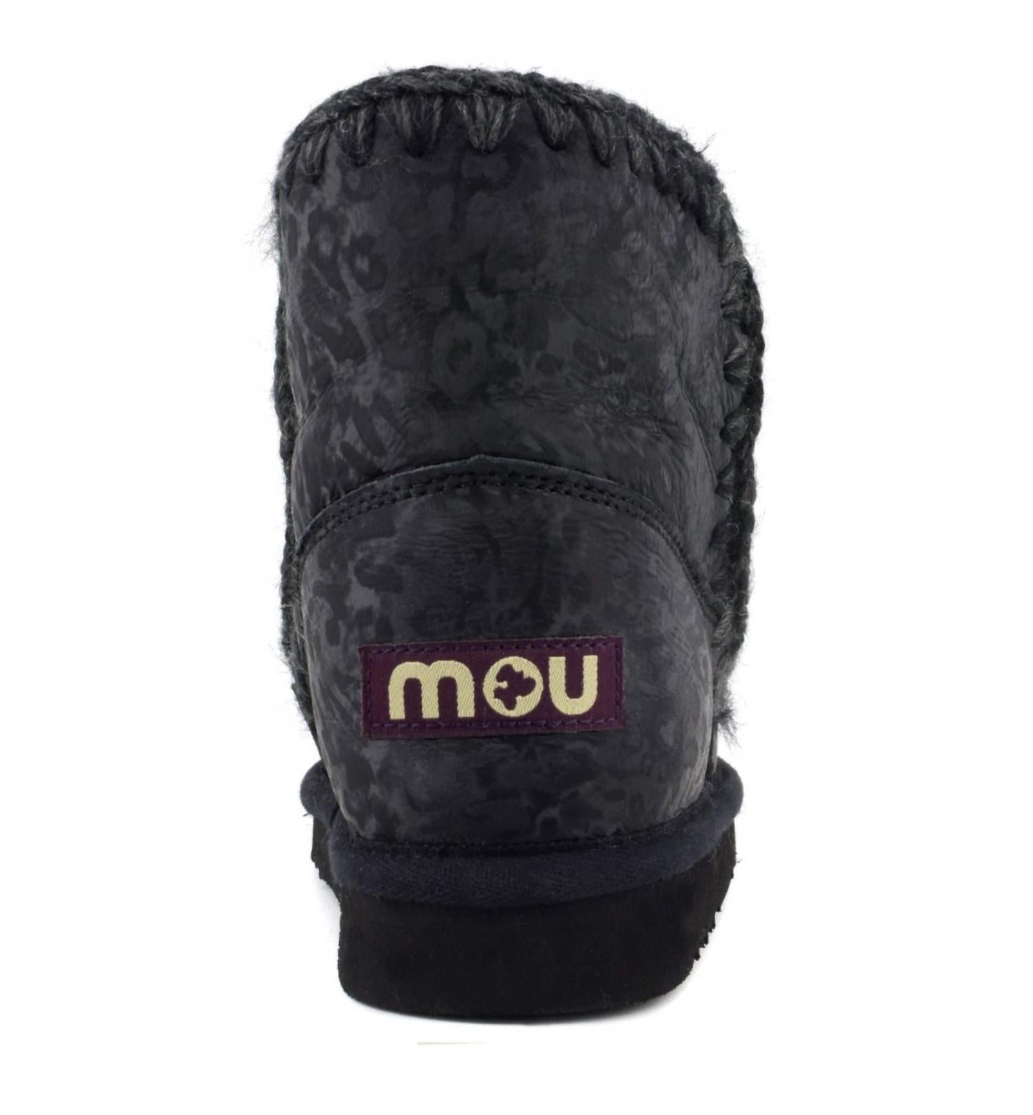 You'll be wishing for rainy days with these stylish yet functional rainboots.Step into style with the Women's Eskimo 18 Boots by mou, presented in a striking Black Leopard design. Expertly hand-crafted, these boots feature an 18cm height crafted from luxurious double-face sheepskin, with distinctive crocheted wool seams and a supportive heel counter. The durable boots are finished with a robust EVA and rubber outdoor sole, ensuring comfort and longevity. Perfect for winter streetwear or holiday travel, they boast a flat heel for a relaxed, regular fit.