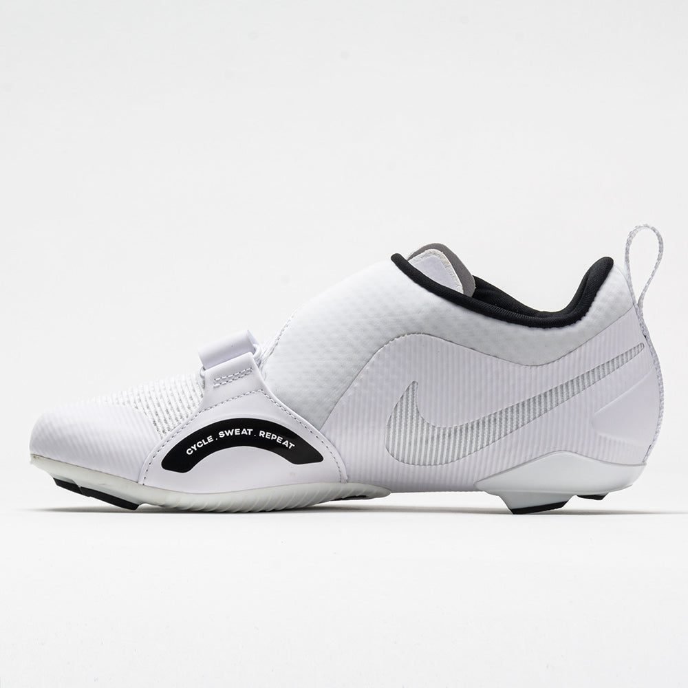 The Nike SuperRep Cycle offers a sleek and breathable design to handle the high-heat. fast-paced nature of indoor cycling. These training shoes use adjustable straps to secure your foot as you pedal forward. Enjoy an airy feel from the lightweight mesh upper that keeps your feet cool. Stay locked-in when you push the pace. thanks to the adjustable hook-and-loop straps. Rubber-tipped studs built into the bottom provide traction and prevent slips as you move to and from your bike. Strap down. clip in. and get ready to ride in the Nike SuperRep cycle!