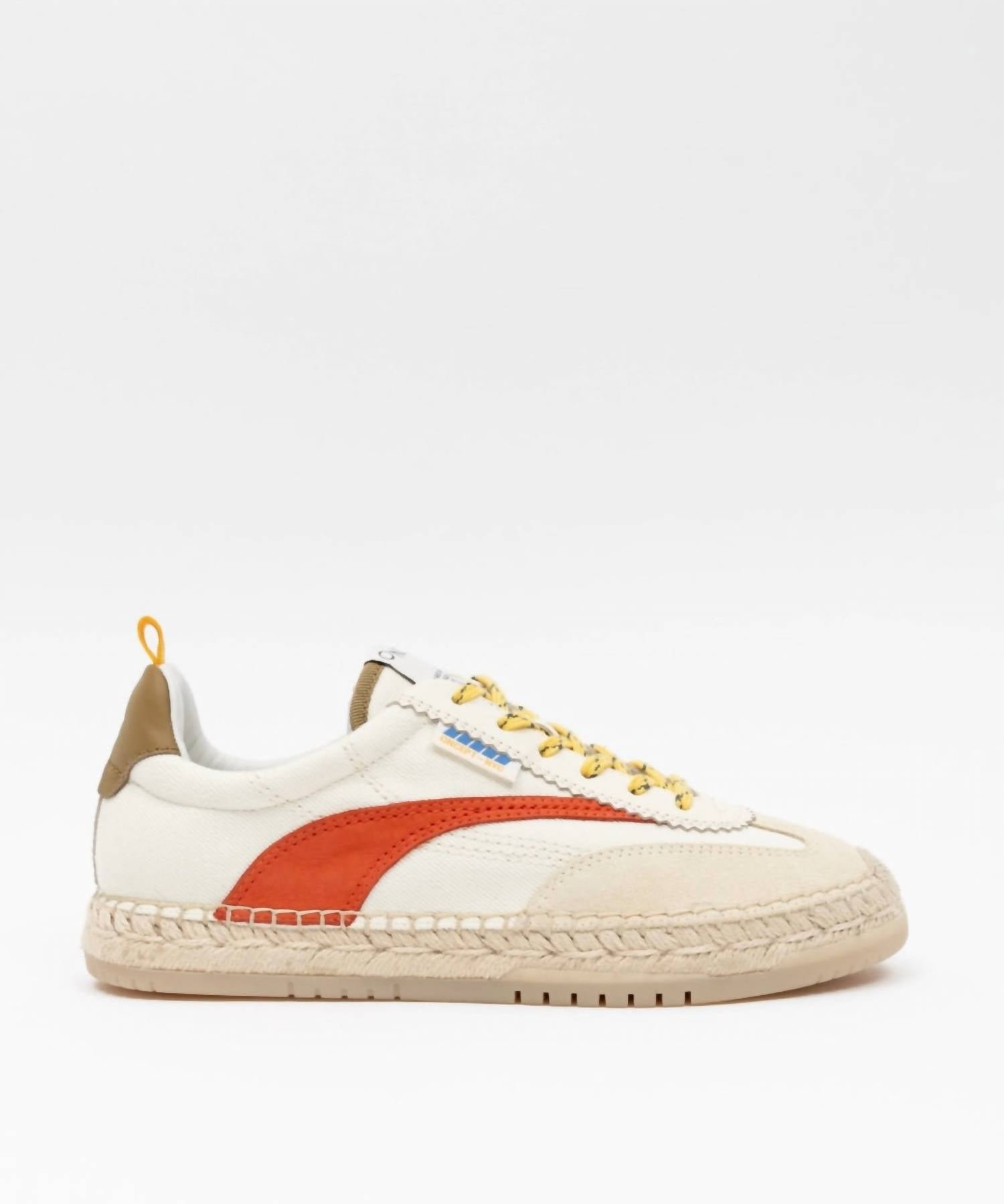 Get your daily steps in with these adorable sneakers.Experience the perfect blend of relaxed style and sophistication with the Women's St Tropez Espadrille Sneaker by Oncept in Ivory Moon. This sneaker features an eco-friendly design with recycled cotton twill and a lower calf leather trim, complemented by a Tencel pulp-based twill lining for optimal comfort. The innovative bio-density molded footbed and recycled rubber bottoms offer a comfortable fit, ideal for both beach outings and city explorations, while the refined groove design enhances flexibility. Care: Outsole can be cleaned with a soft cloth and water; upper should be protected with waterproof spray; not machine washable. Designed with a flat heel and round toe, perfect for springtime festivals or laid-back holidays like the 4th of July.