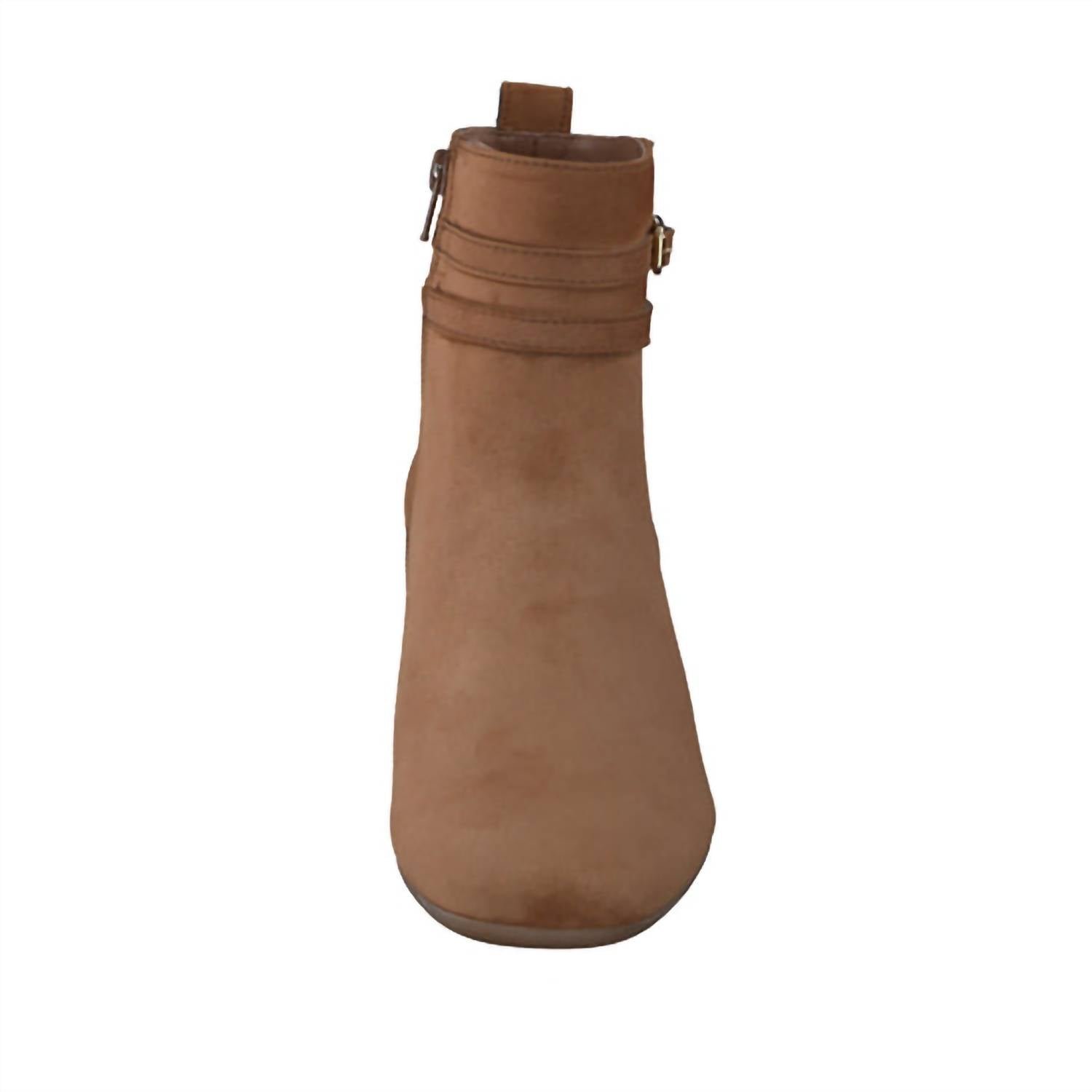 Say hello to the perfect, most versatile boot. The ankle height makes this style easily transition from day to night. Wear them with your favorite skinny jeans and tee for a more laid back look, or pair them with your favorite mini dress and jacket for a night out on the town.Step into elegance with the Women's Sydney Buckle Bootie by Paul Green, a chic addition to your fall travel wardrobe. Made from luxurious toffee suede, this bootie features a mid-height 2.5-inch block heel and an almond toe shape, complemented by decorative contrasting straps at the ankle. Handmade in Austria using Italian leathers and components, it offers impeccable design and Paul Green's renowned arch support. Closure: Inside zipper.