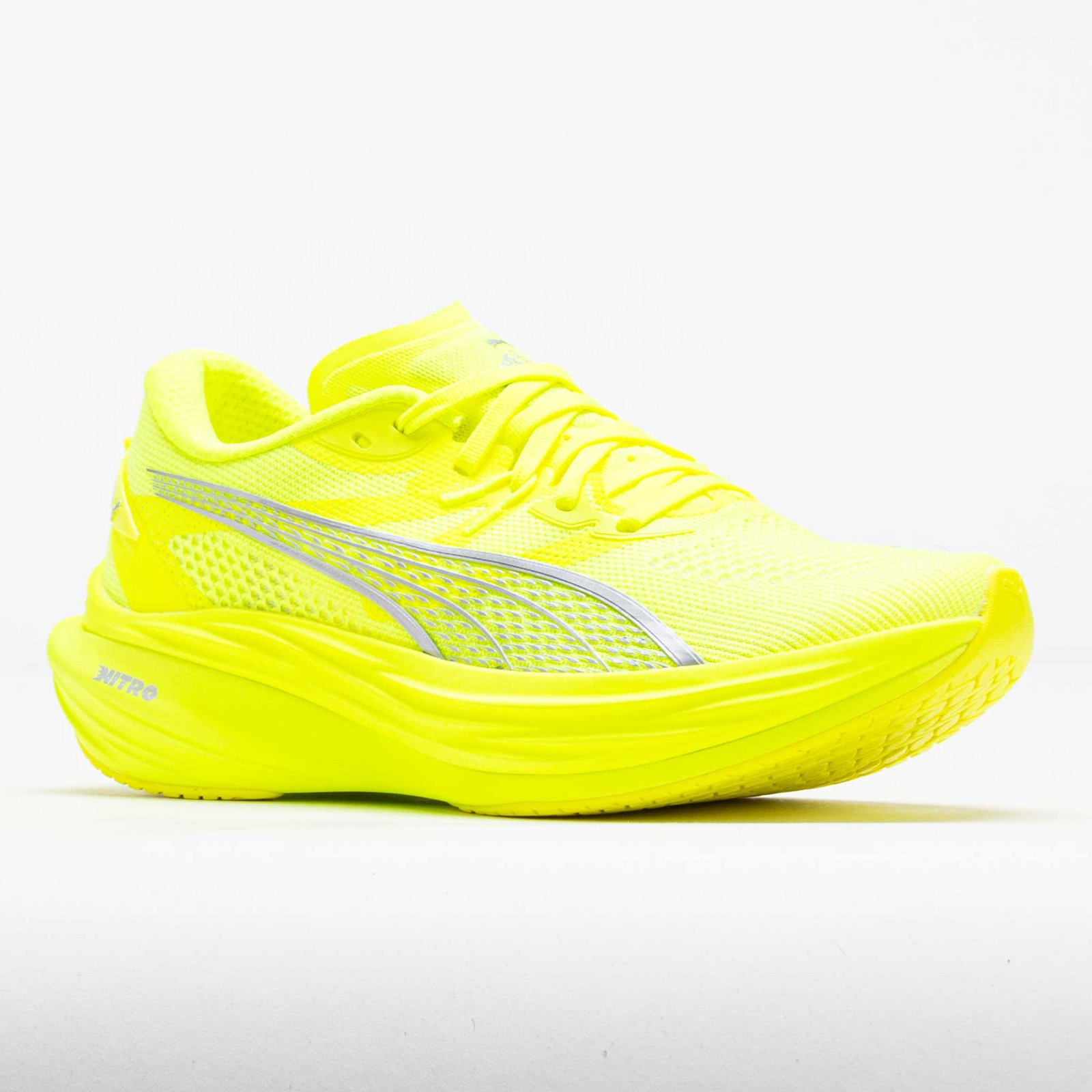 Stay ahead of the pack in the PUMA Deviate Nitro 3! This award-winning neutral running shoe is now lighter and smoother than ever. Stay secure at high speeds in the breathable mesh upper. A powerful NITROFOAM midsole combines with PWRPLATE technology for a snappy. energetic ride. The PUMAGRIP rubber outsole delivers top-notch traction on any surface. Whether youre training or racing. the PUMA Deviate Nitro 3 is your daily source of speed!