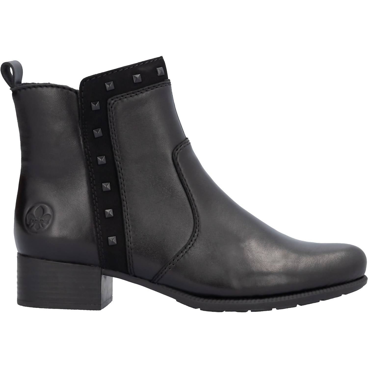 Say hello to the perfect, most versatile boot. The ankle height makes this style easily transition from day to night. Wear them with your favorite skinny jeans and tee for a more laid back look, or pair them with your favorite mini dress and jacket for a night out on the town.Why compromise on style or comfort when you can have both with the Rieker Women's Leather Ankle Boots in striking Black Crafted from premium leather, these boots feature an almond toe shape and stand on a low block heel of 1.3 inches, perfect for minimalist fall trends or Thanksgiving festivities. The zipper closure ensures easy wear while the thermoplastic elastomer sole provides optimal traction, making them a versatile addition for your travel wardrobe. These boots are designed for women with a medium shoe width, promising a snug and flexible fit for every occasion.