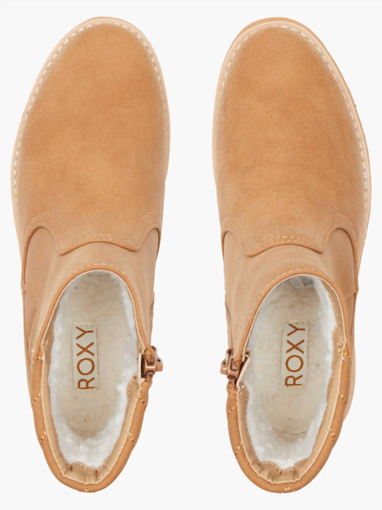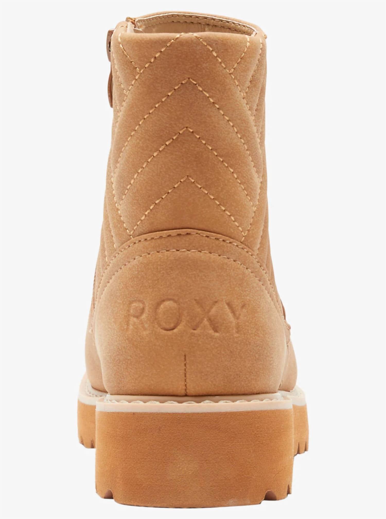 Say hello to the perfect, most versatile boot. The ankle height makes this style easily transition from day to night. Wear them with your favorite skinny jeans and tee for a more laid back look, or pair them with your favorite mini dress and jacket for a night out on the town.Step into comfort and style with the Women's Jovie Fur II Boot by ROXY, crafted in a tan synthetic faux-leather blend. The slip-on design features a quilted heel detail and a convenient medial zipper, complemented by a cozy sherpa footbed and lining for ultimate warmth. Waterproof with 5K DryFlight technology, these boots offer a cushioned foam midsole and an updated aggressive Roxy Alpine TPR lug bottom. Composition includes 98% Synthetic PU and 2% Metal Rivet, with a 38 mm heel height, making it ideal for all-day wear.
