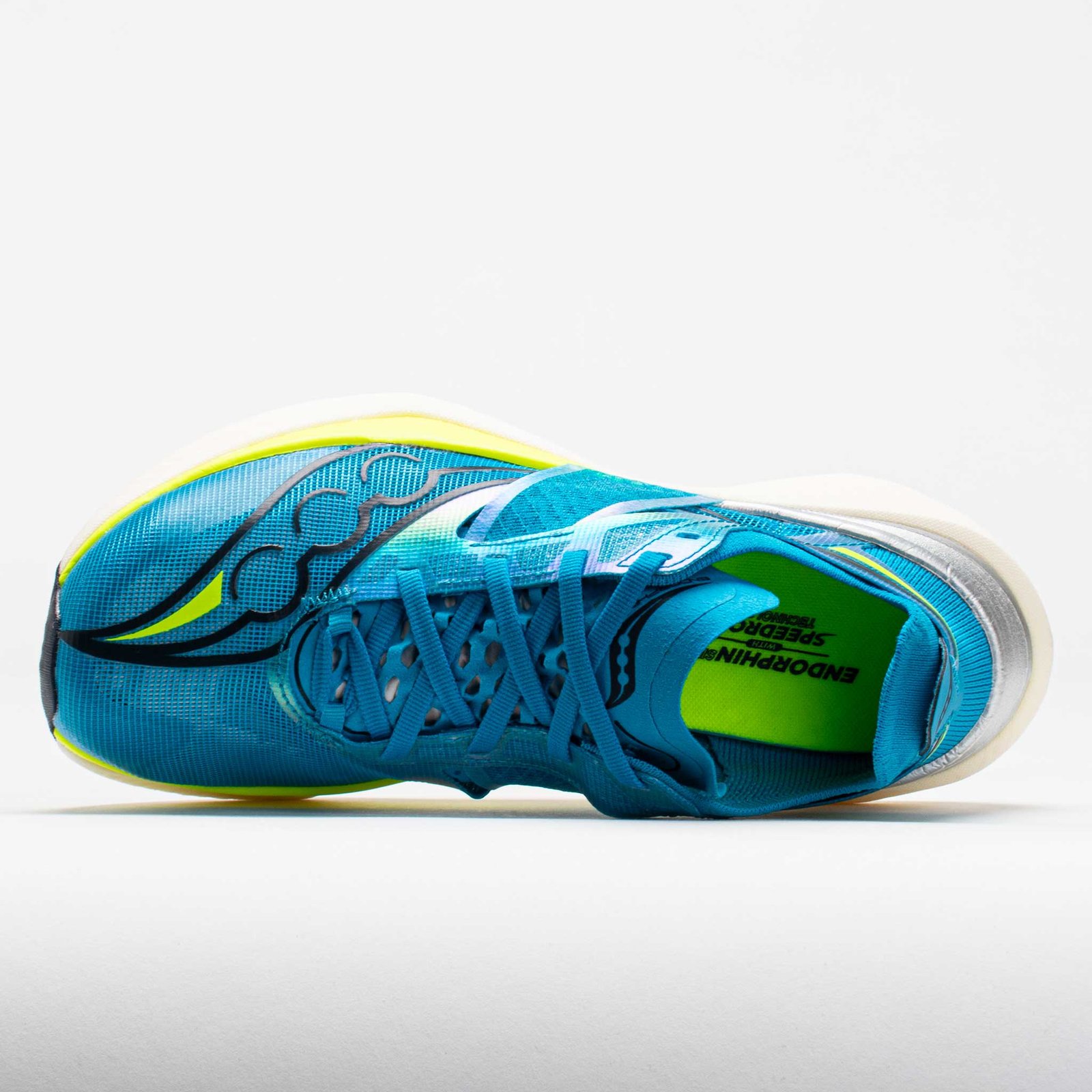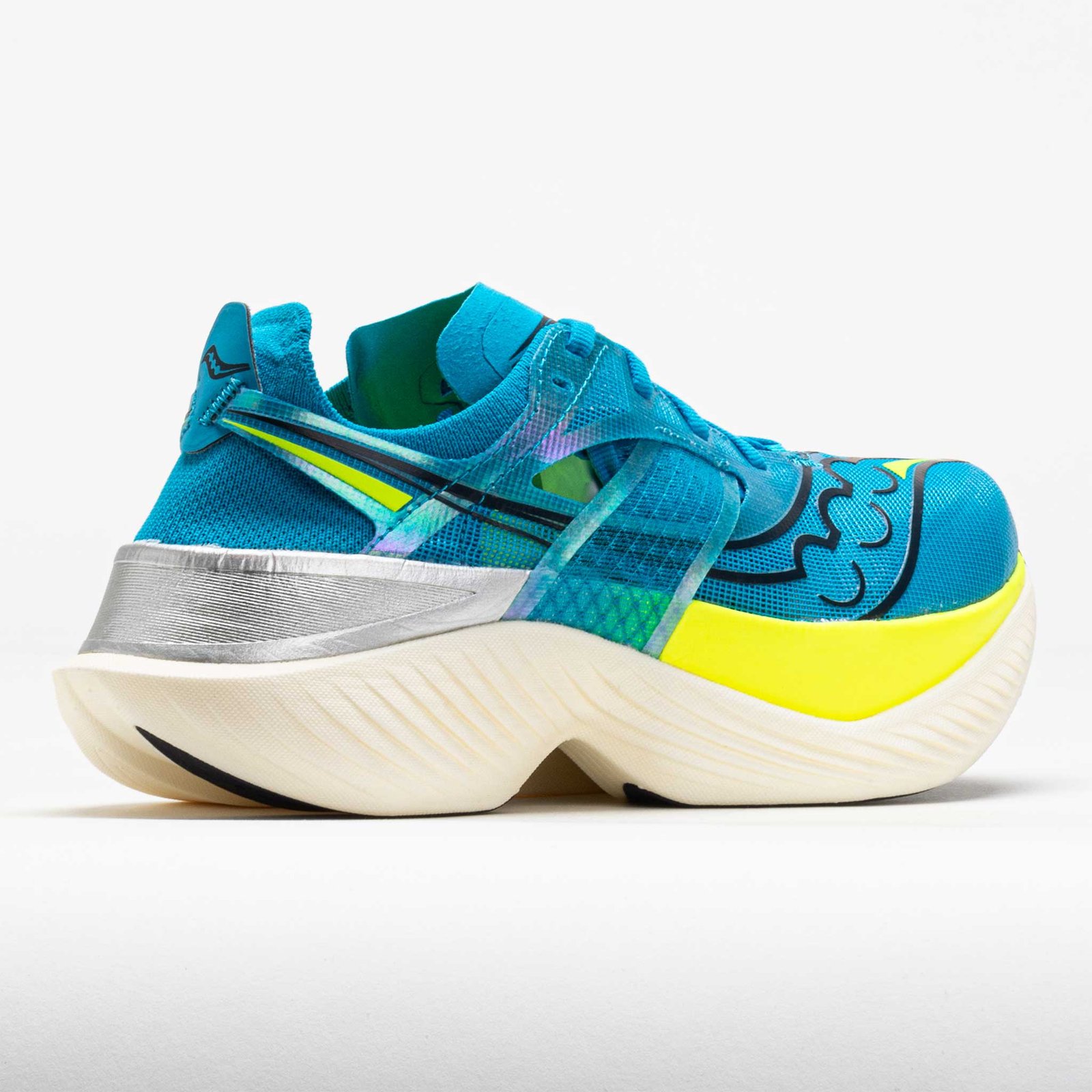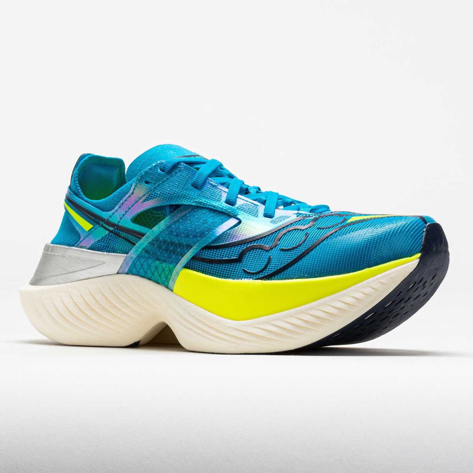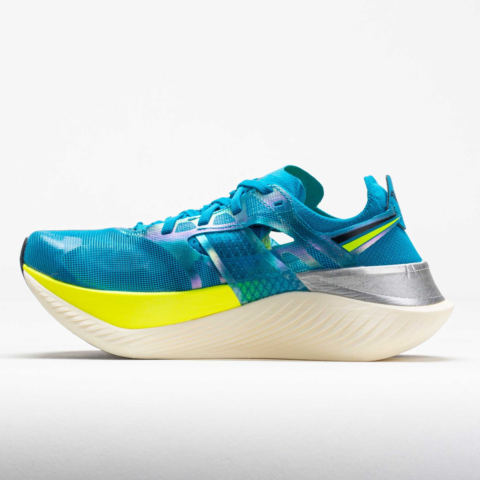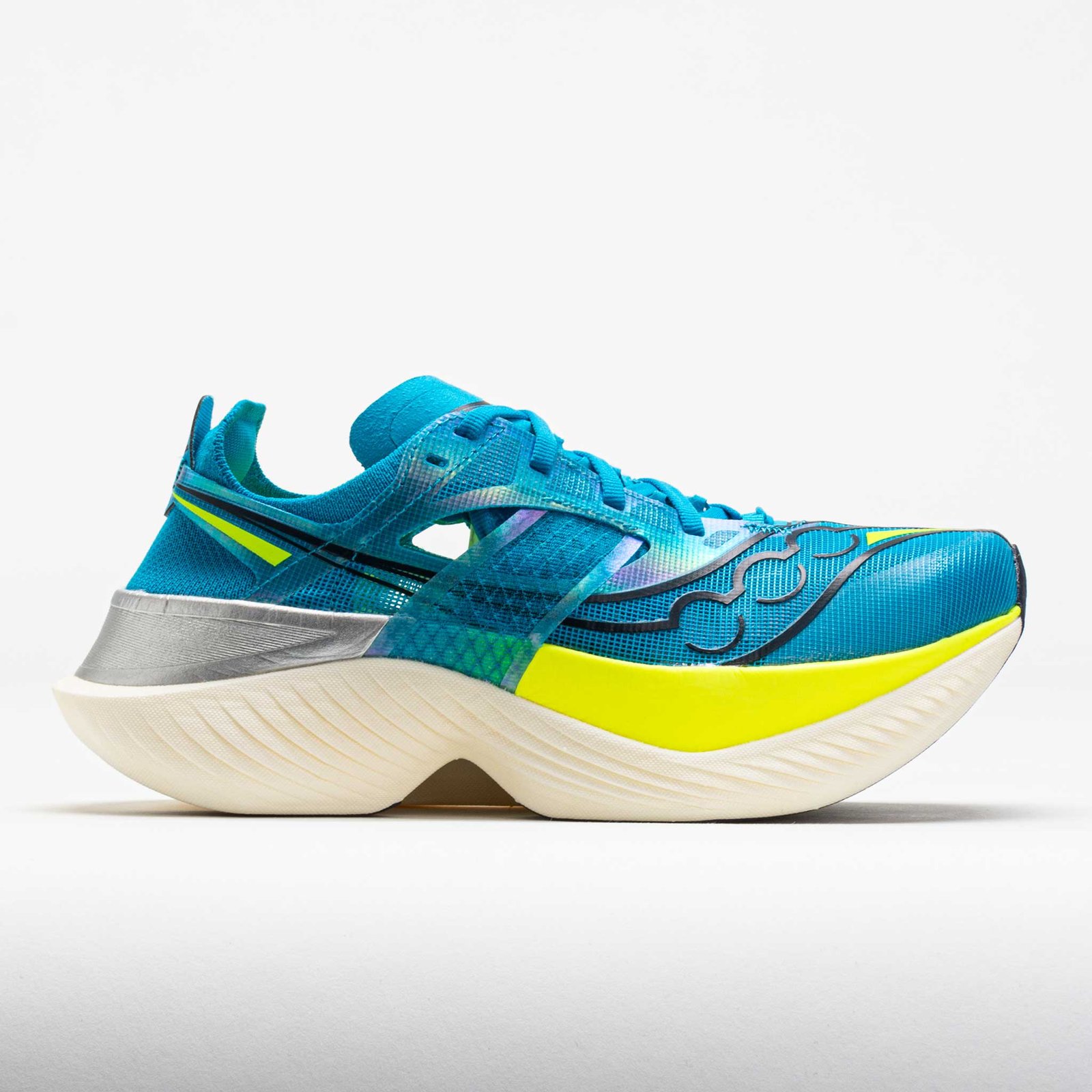 Built to break barriers. the Saucony Endorphin Elite helps you test your limits. This speedy racing shoe features a propulsive carbon plate and SPEEDROLL technology for snappy transitions. Stay comfortable from your first stride to the finish line in the distraction-free upper. The PWRRUN HG super foam midsole provides more rebound to propel you toward personal records. In the Saucony Endorphin Elite. your best is yet to run!