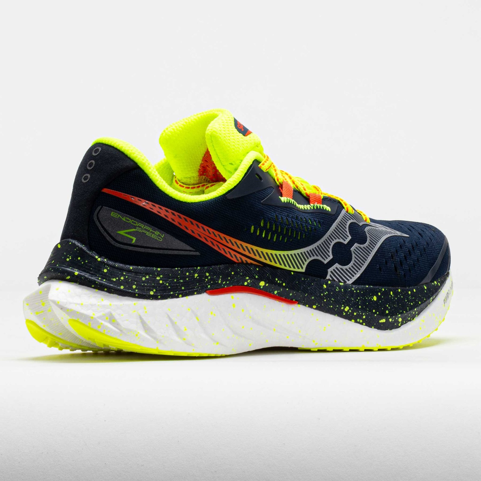 Slip into a shoe thats always down to ride. Smooth. energetic and reliable. the Saucony Endorphin Speed 4 supports your journey from training to race day. Enjoy the perfect blend of response and forgiveness from the winged nylon-plate. SPEEDROLL technology and PWRRUN PB foam provide smooth and effortless transitions. If you want a long-distance relationship with your running shoes. choose the Saucony Endorphin Speed 4!
